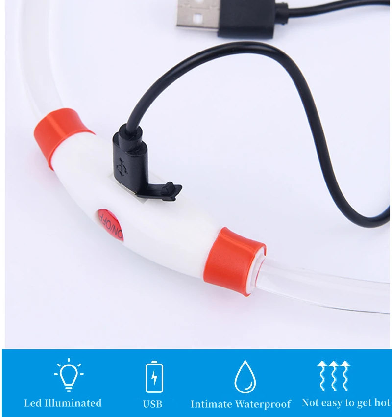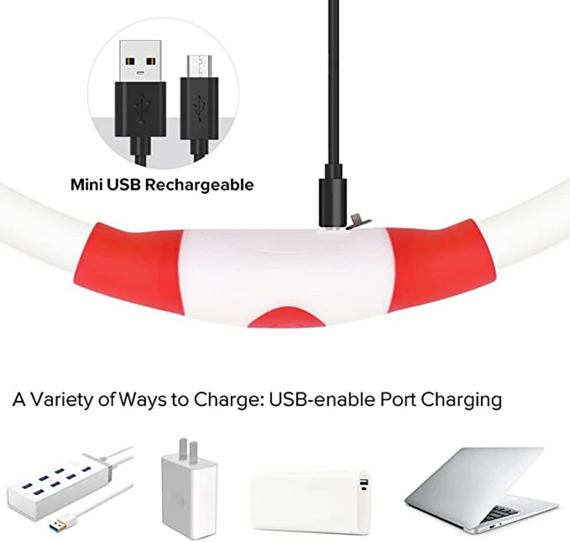3.USB RECHARGEABLE: The collar can be recharged by USB cable with daily use device. And it is very Eco-friendly. Charge time: 2 hours. Usage time: 5 hours for quick flash, 7 hours for slow flash, 3 hours for steady glow.