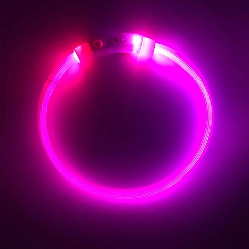 USB 충전식 LED 개 목걸이, 분실 방지 목걸이, 3 가지 모드 LED 조명, 빛나는 손실 방지