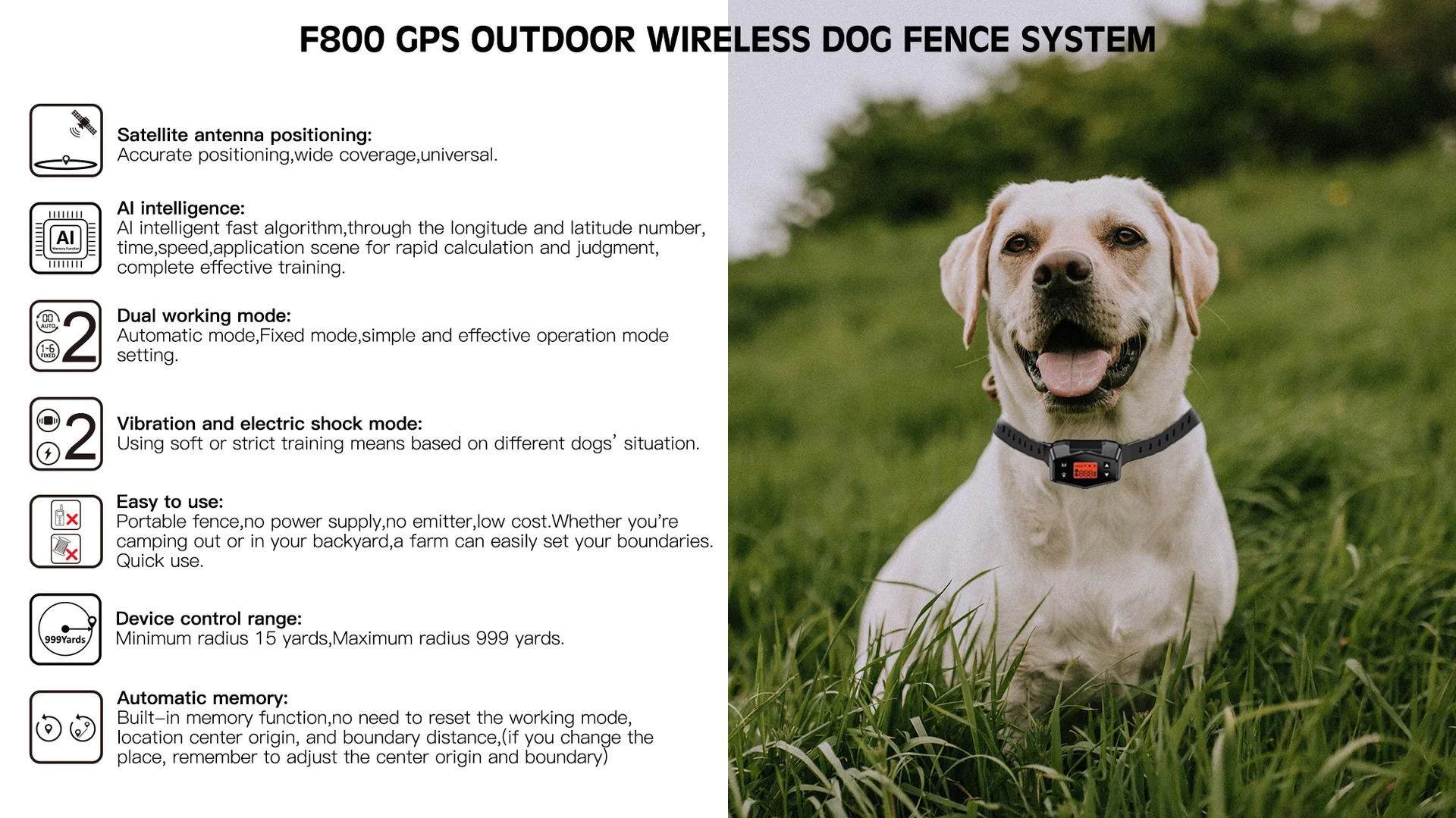 Valla eléctrica inalámbrica para perros con GPS, sistema de contención para mascotas, radio de hasta 1000 yardas/recargable/collar de choque perimetral para perros grandes