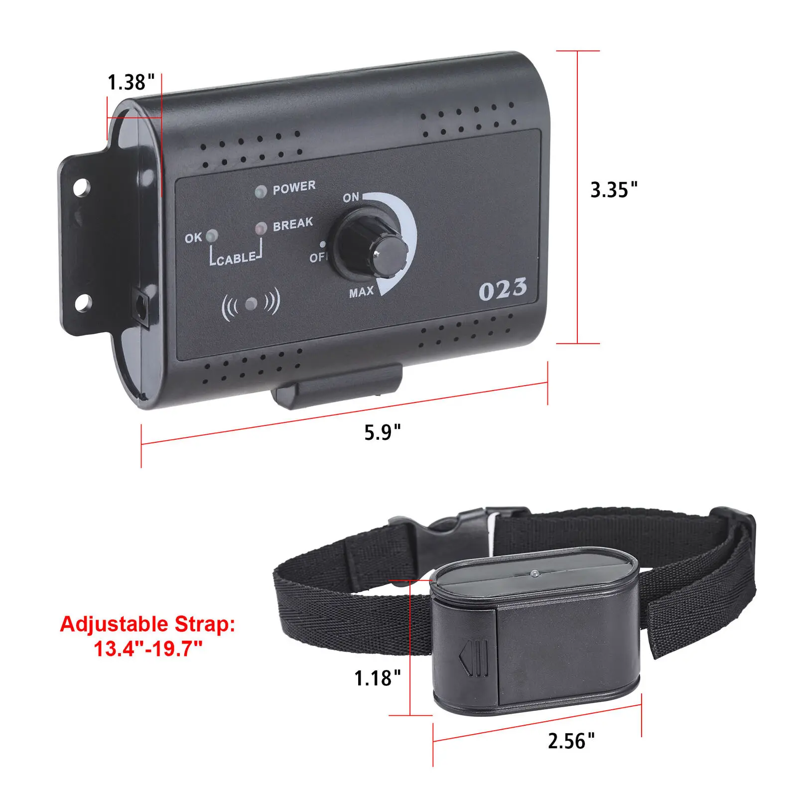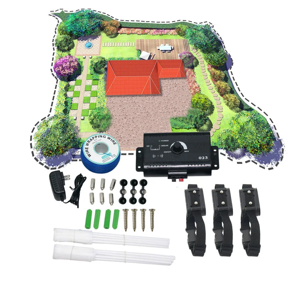 Nuestro Sistema de cercas ocultas es el sistema de contención de mascotas más confiable y asequible. Este sistema ayudará a enseñar a los perros cuáles son los límites de juego seguros y mantendrá a su perro alejado de áreas peligrosas como carreteras, piscinas o zonas prohibidas como jardines de vecinos, parterres de flores, etc. Enterre fácilmente el cable a lo largo de los contornos del área designada y coloque el collar receptor en su mascota. El collar Detectará las señales enviadas por el cable. Cuando el perro se acerque al límite, el collar emitirá un pitido de advertencia, recordándole al perro que mantenga su distancia. Si el perro sigue adelante, el sistema emitirá aumentos graduales de estímulo hasta que el perro retroceda. Gradualmente, aprenderá a respetar los límites y aprenderá cuál es el área segura.