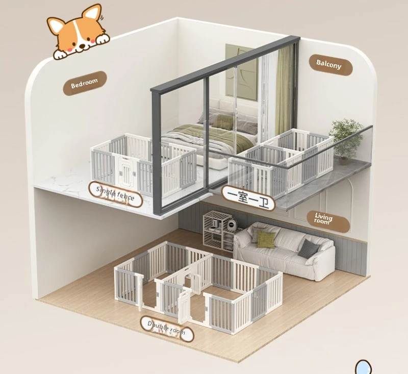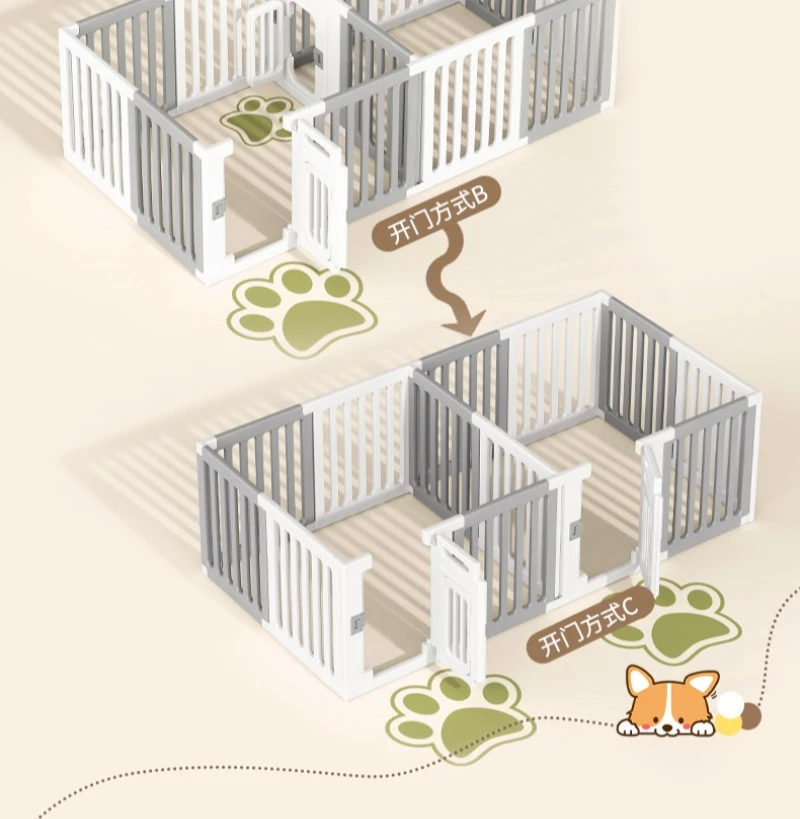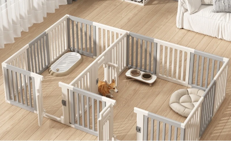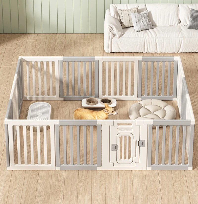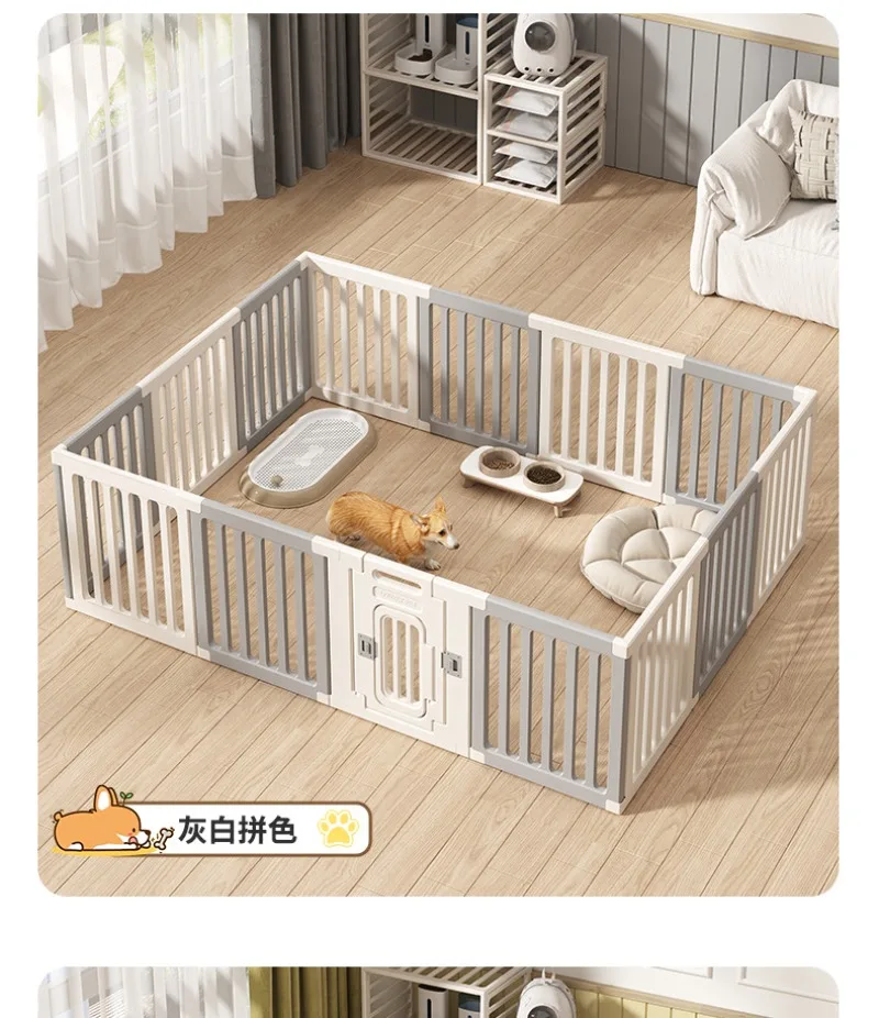 Descripción:Combinación de colores gris y blanco, valla para perros, combinación de valla para mascotas, jaula para perros medianos y pequeños, suministros para valla de aislamiento interior