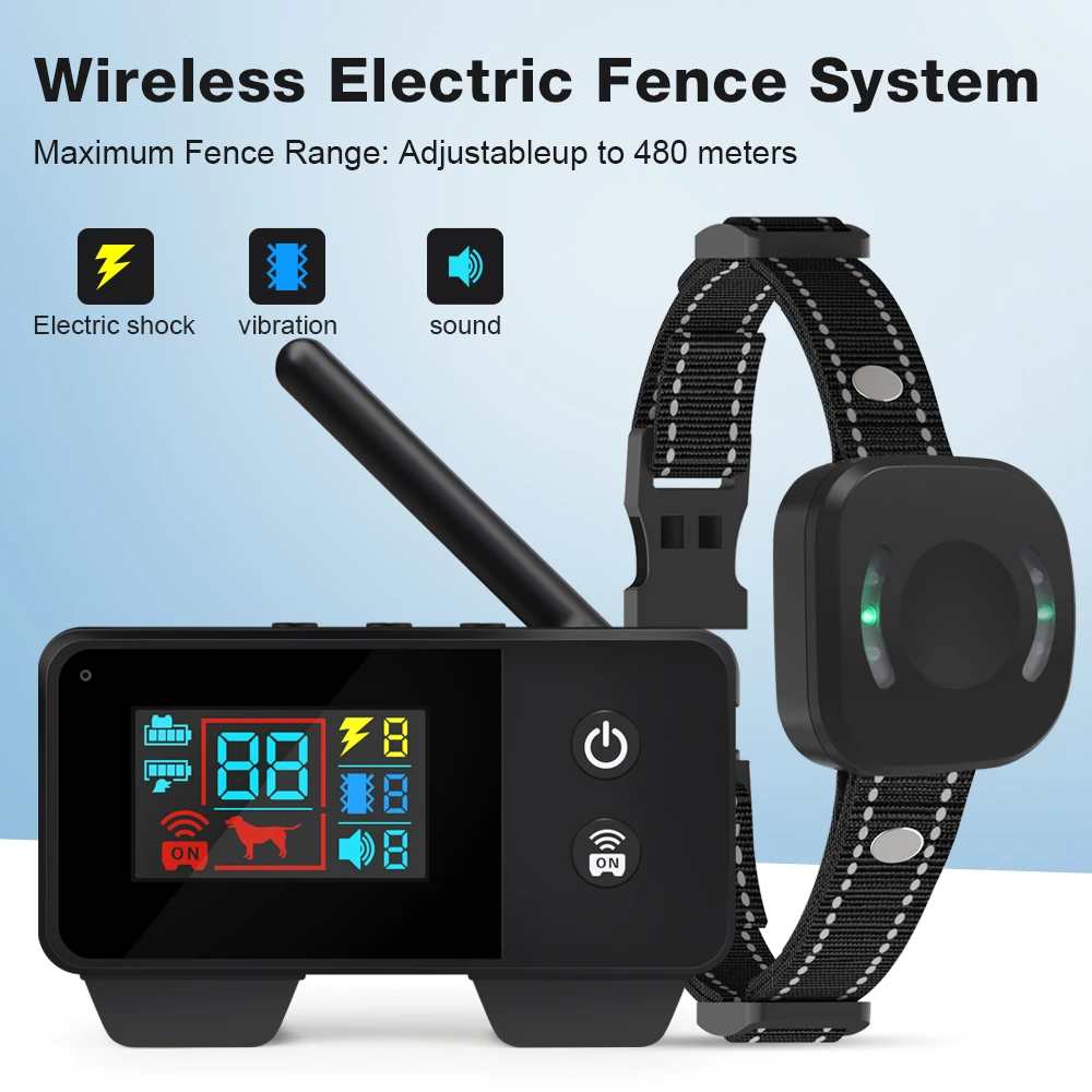 Valla inalámbrica para perros de 480M, Collar electrónico de adiestramiento para perros, entrenador recargable para perros, juego de valla con Control remoto y choque por vibración