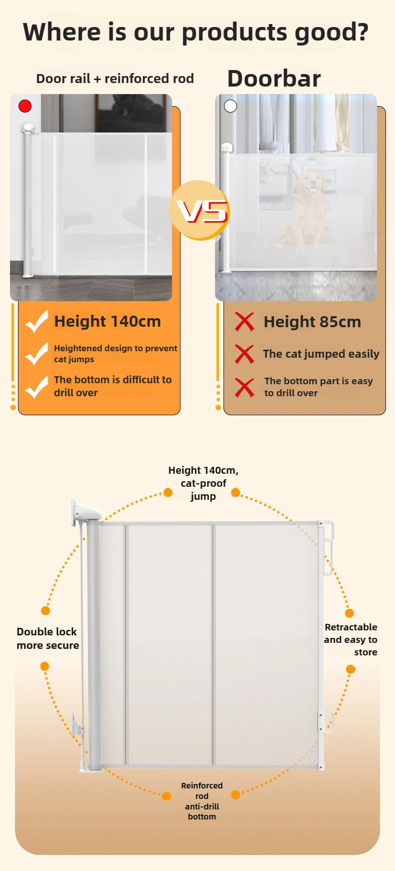 Valla de puerta para mascotas de 140Cm de alto, barandilla de puerta antiperforación elevada, valla anti-gato, vallas para perros, productos para mascotas
