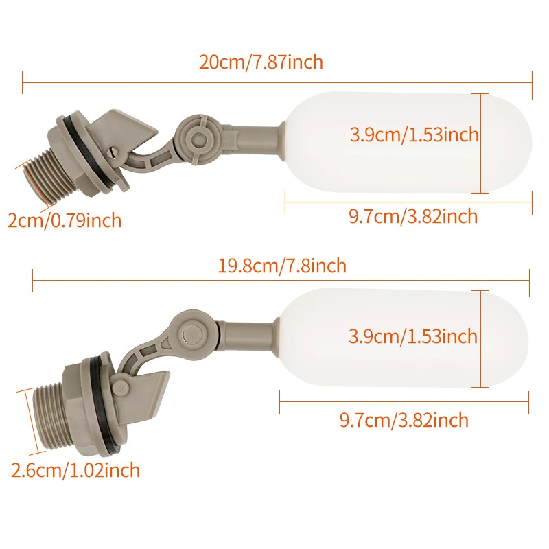 2.Mini válvula flotante de PVC para montaje en tanque con brazo ajustable, puede ajustar el nivel del agua según sus demandas.