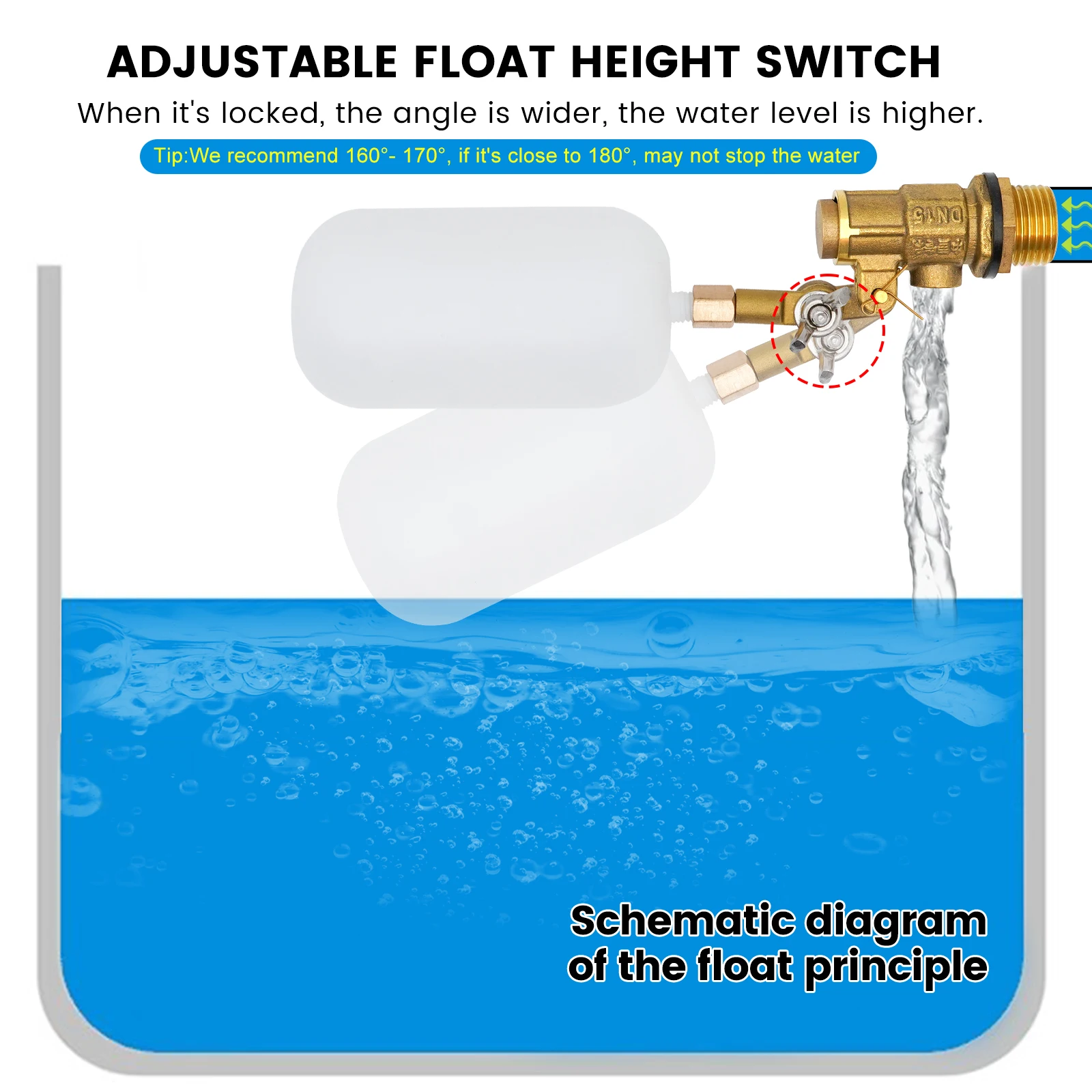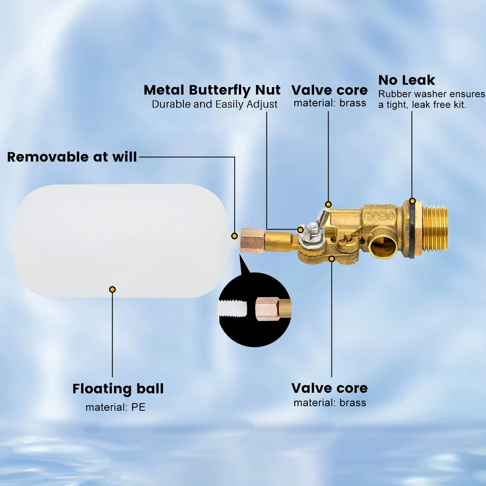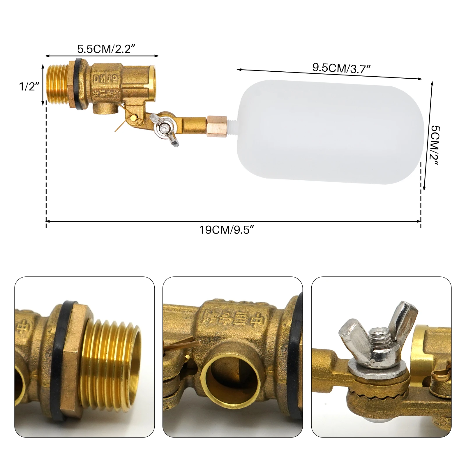 Válvula de cobre de nivel de agua de rosca macho de 1/2 pulgadas, torre de flotación, válvula de bola, tanque de agua, accesorios, 1/2 piezas