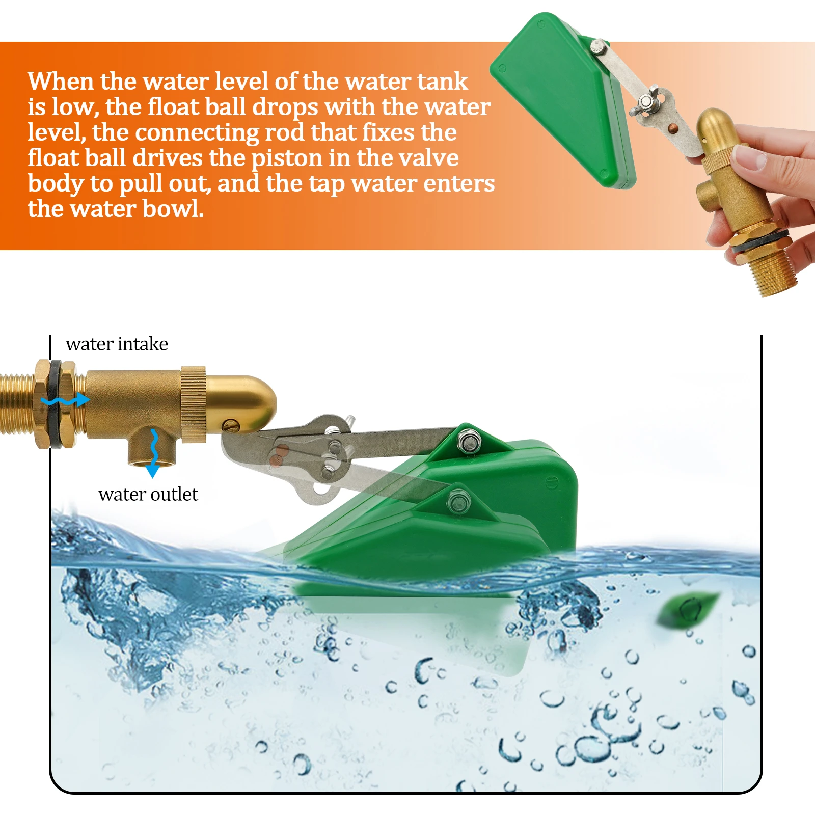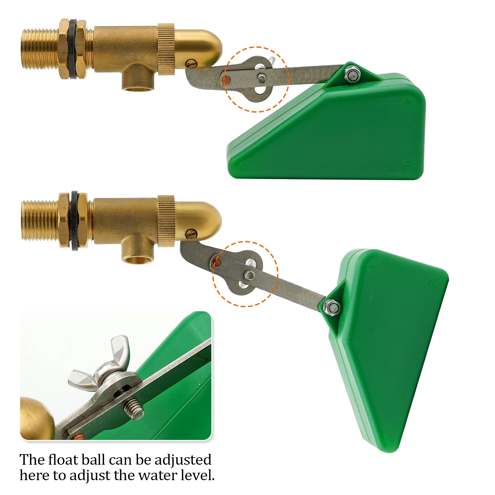Válvula de flotación de agua de latón de 2 piezas, válvula de flotador de agua de cobre de 1/2 pulgadas, brazo ajustable, válvula de flotación de llenado automático, tanque de agua