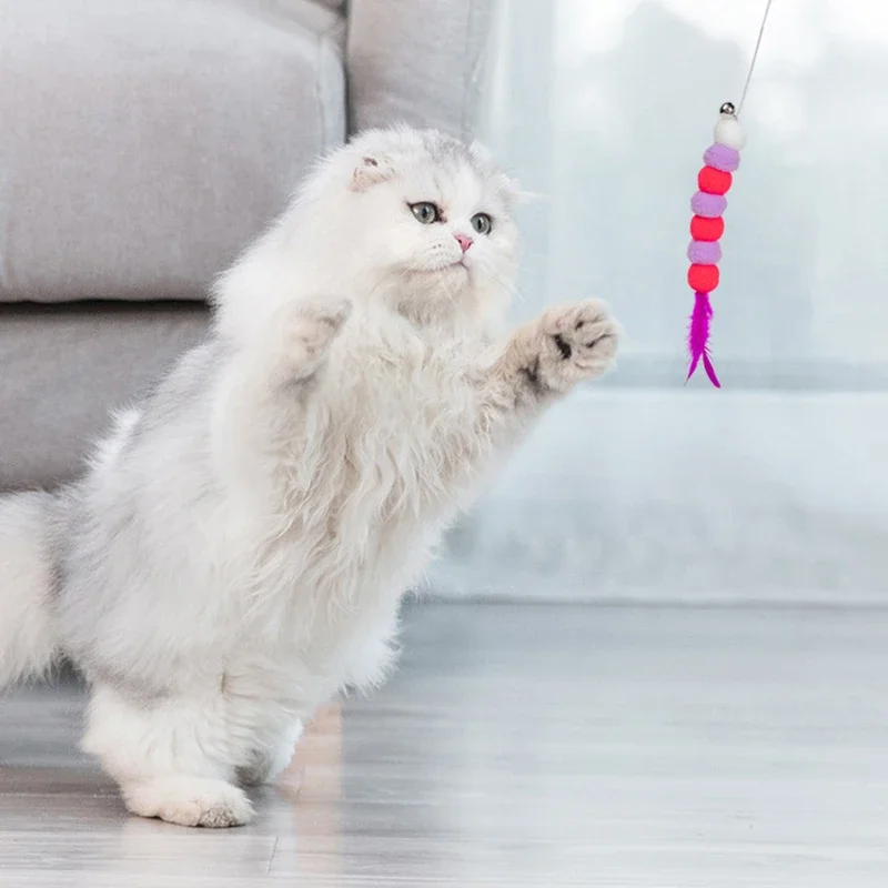 Varilla de juguete interactiva con campana y pluma para gatos, juguete interactivo divertido para gatitos, palo para mascotas