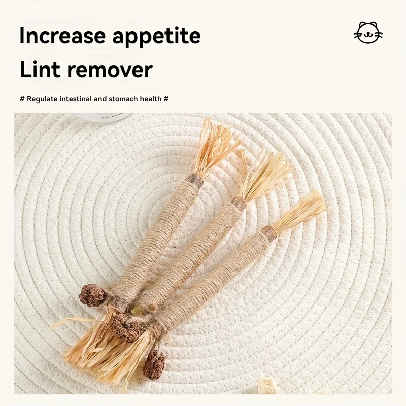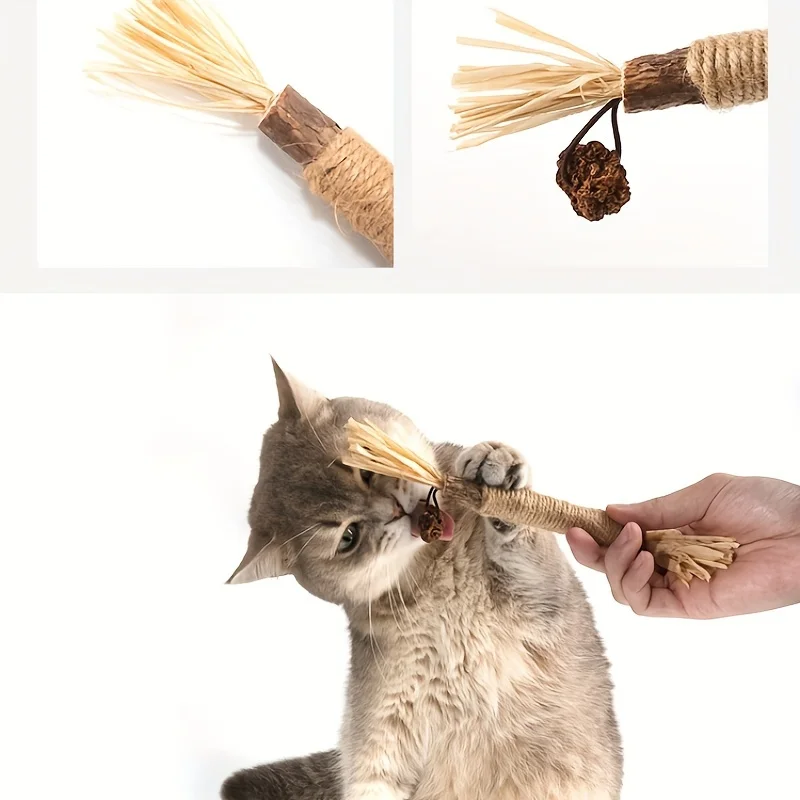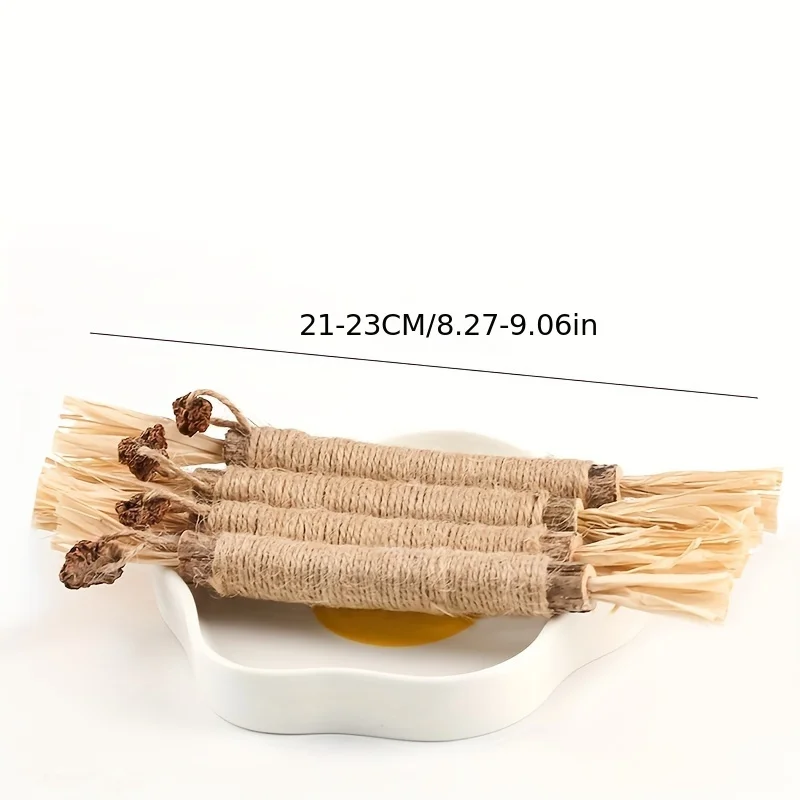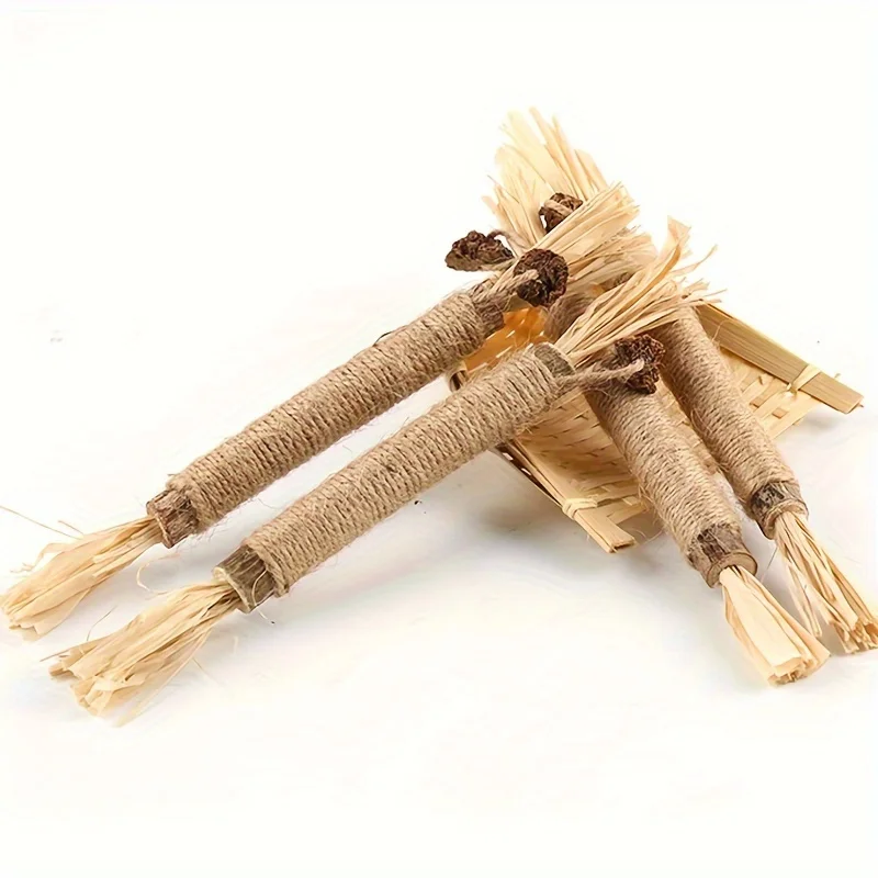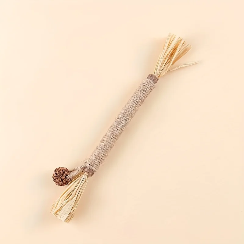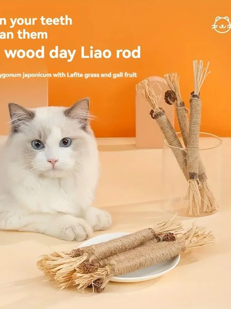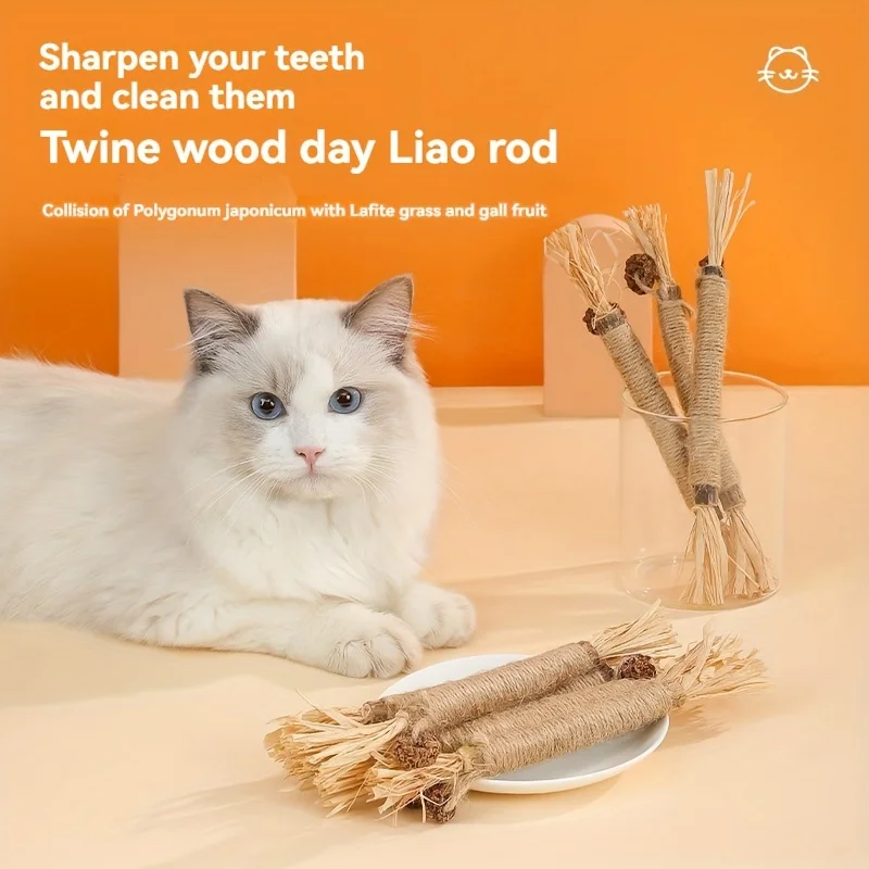 Varilla de madera de yute Liao para gato, palo masticable con Poligono Natural Japonicum, juguete de limpieza Dental para razas pequeñas