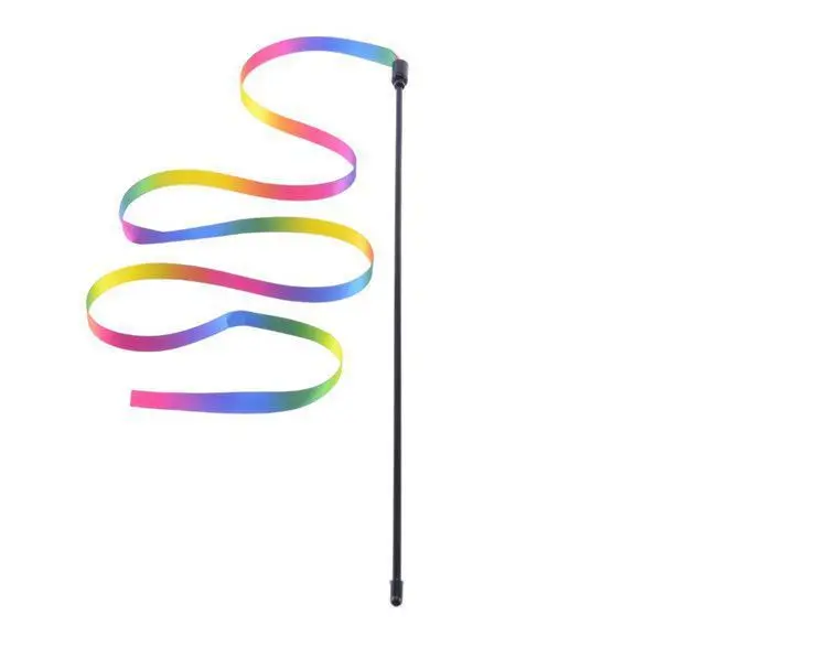 Nombre: Cinta de arco iris de doble cara, palo divertido para gato
