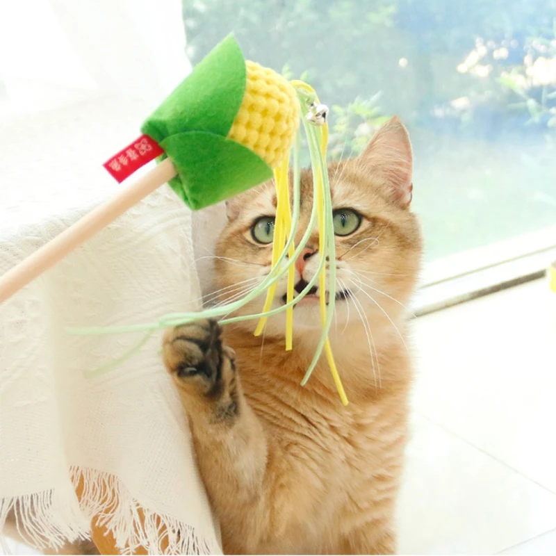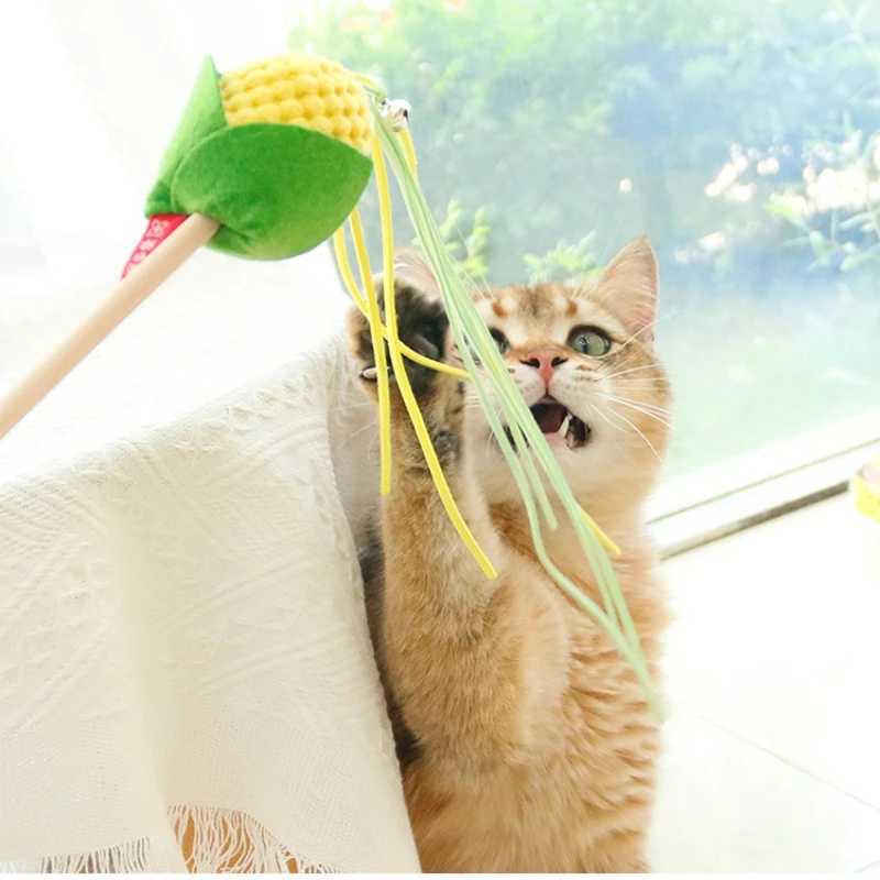 Varita de rompecabezas para gatos, juguete interactivo para gatos, divertido maíz, varilla de borla colorida, varita de rompecabezas, suministros para gatos, juguete para gatos