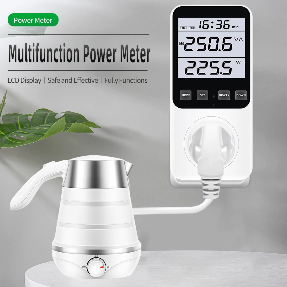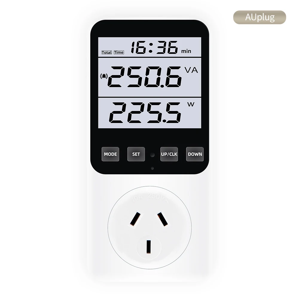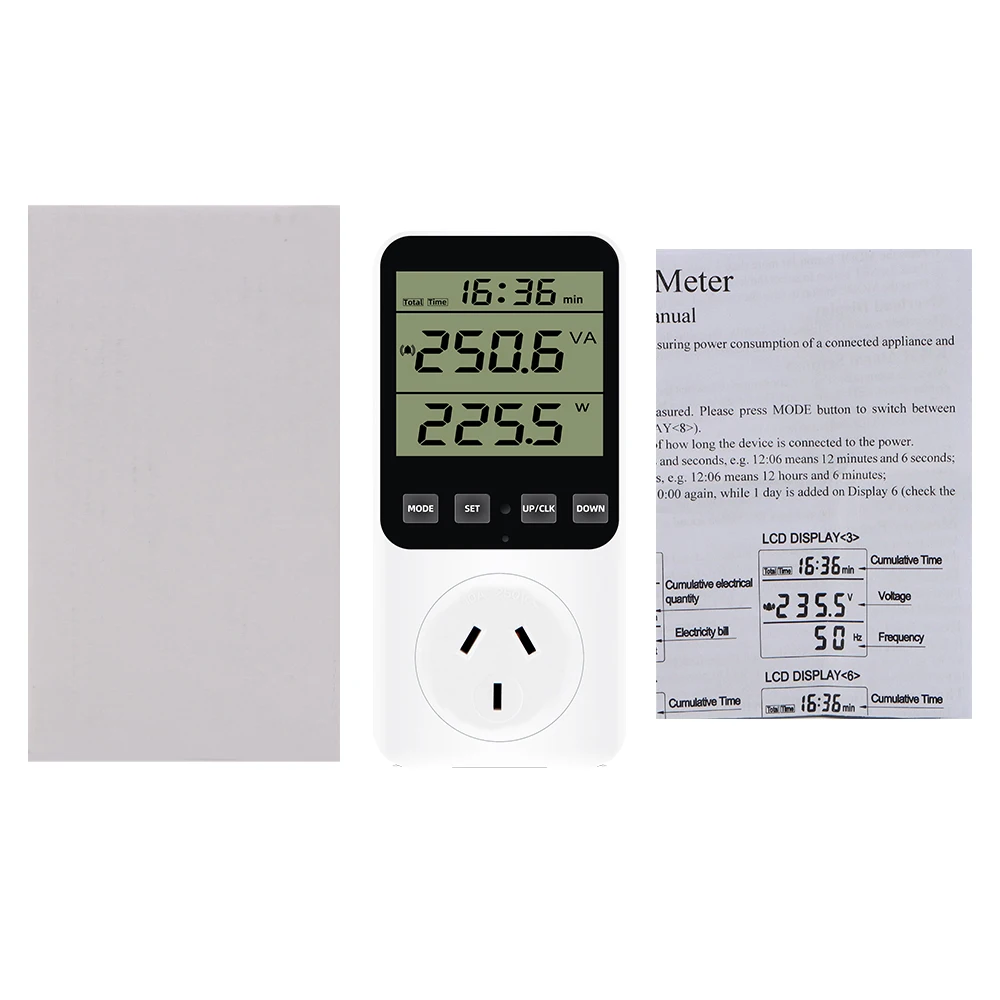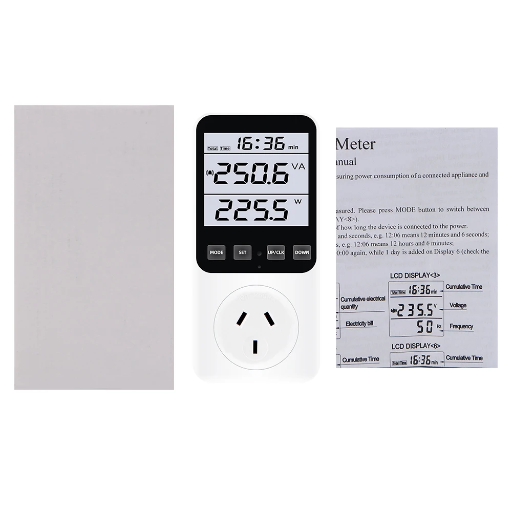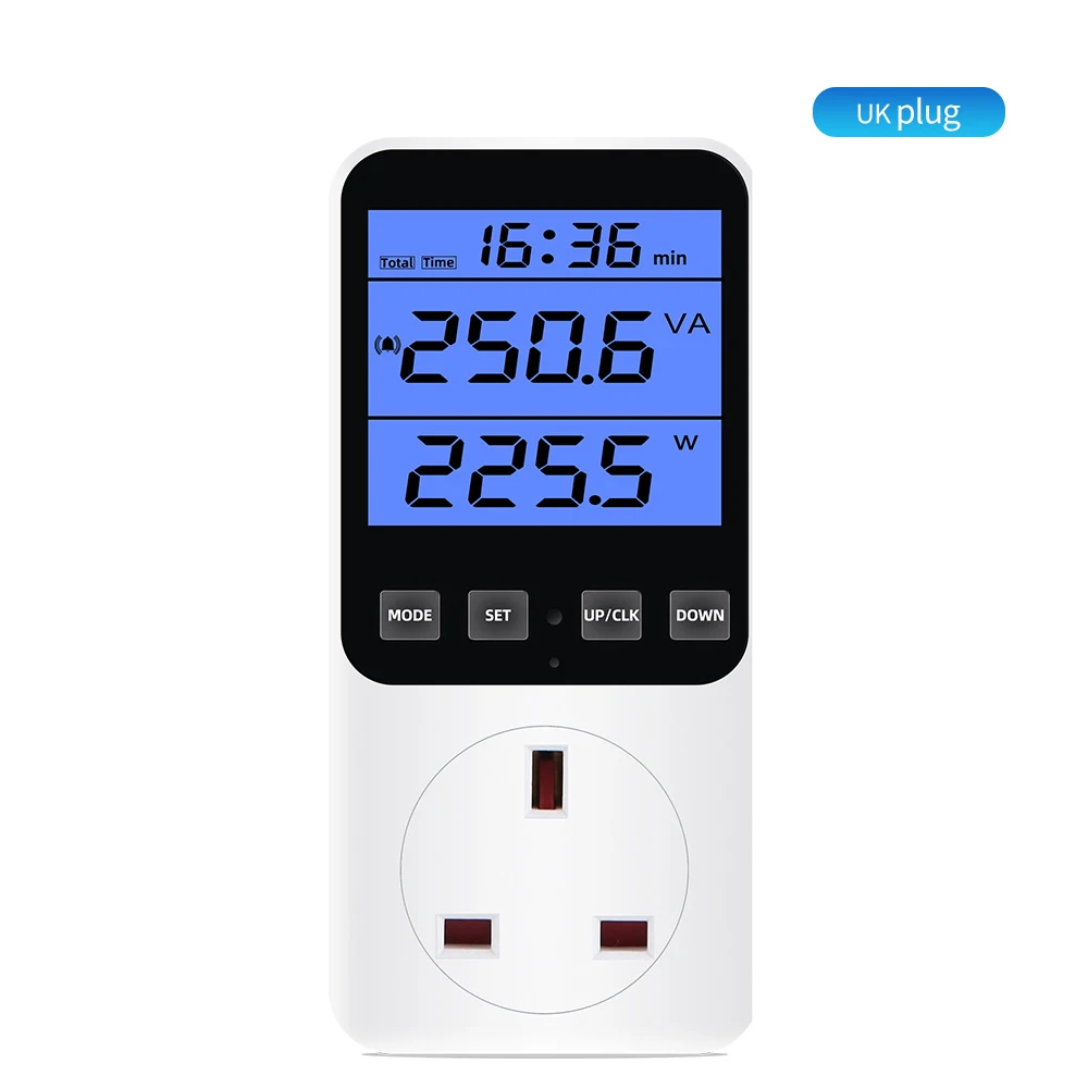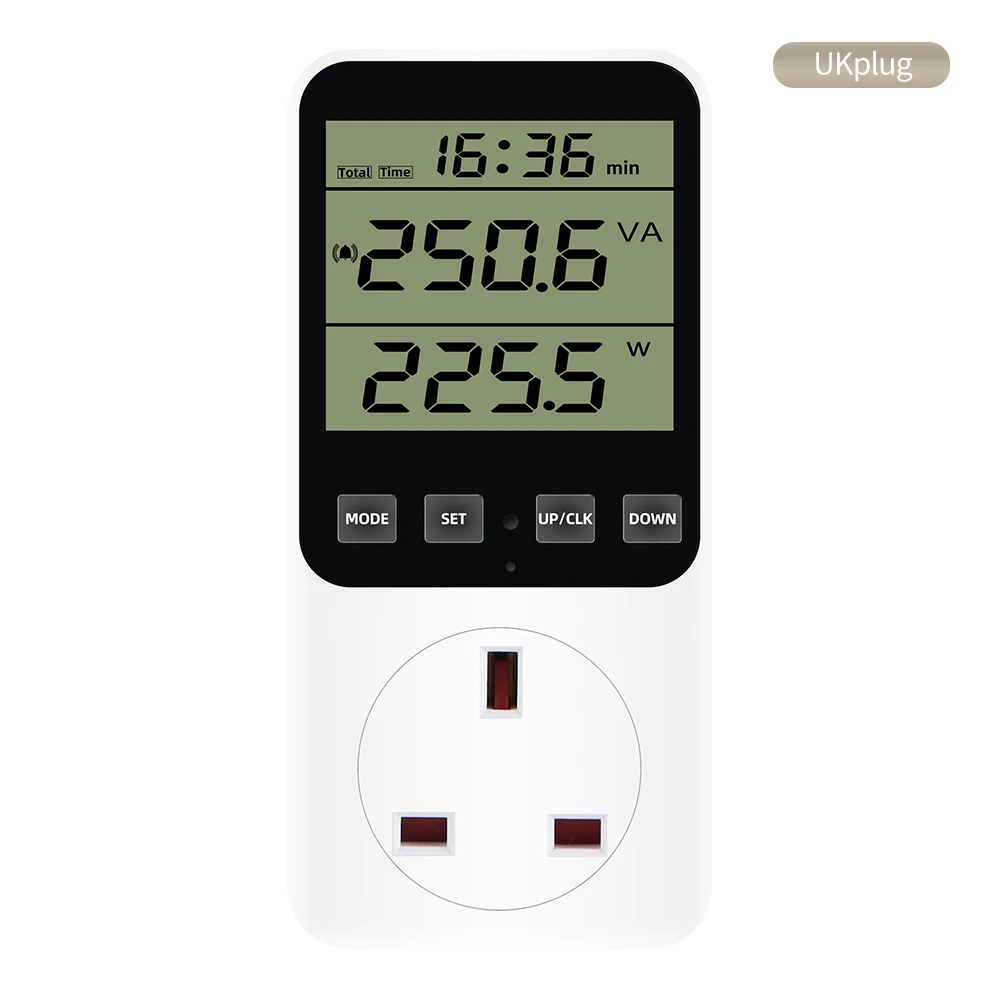 * 14 modos de medición: medir el consumo de energía (W), potencia aparente (VA), consumo de energía, factura de energía, voltaje (V), frecuencia (Hz), amperaje (A), factor de potencia (PF), potencia máxima/mínima, tiempo acumulado (kWh), tono de tecla, alarma de sobrecarga, alarma de consumo de energía, Visualización de pulso y estado de cada factura de energía. (No cuenta en modo de espera) Un ayudante perfecto para el hogar para ahorrar electricidad y dinero.