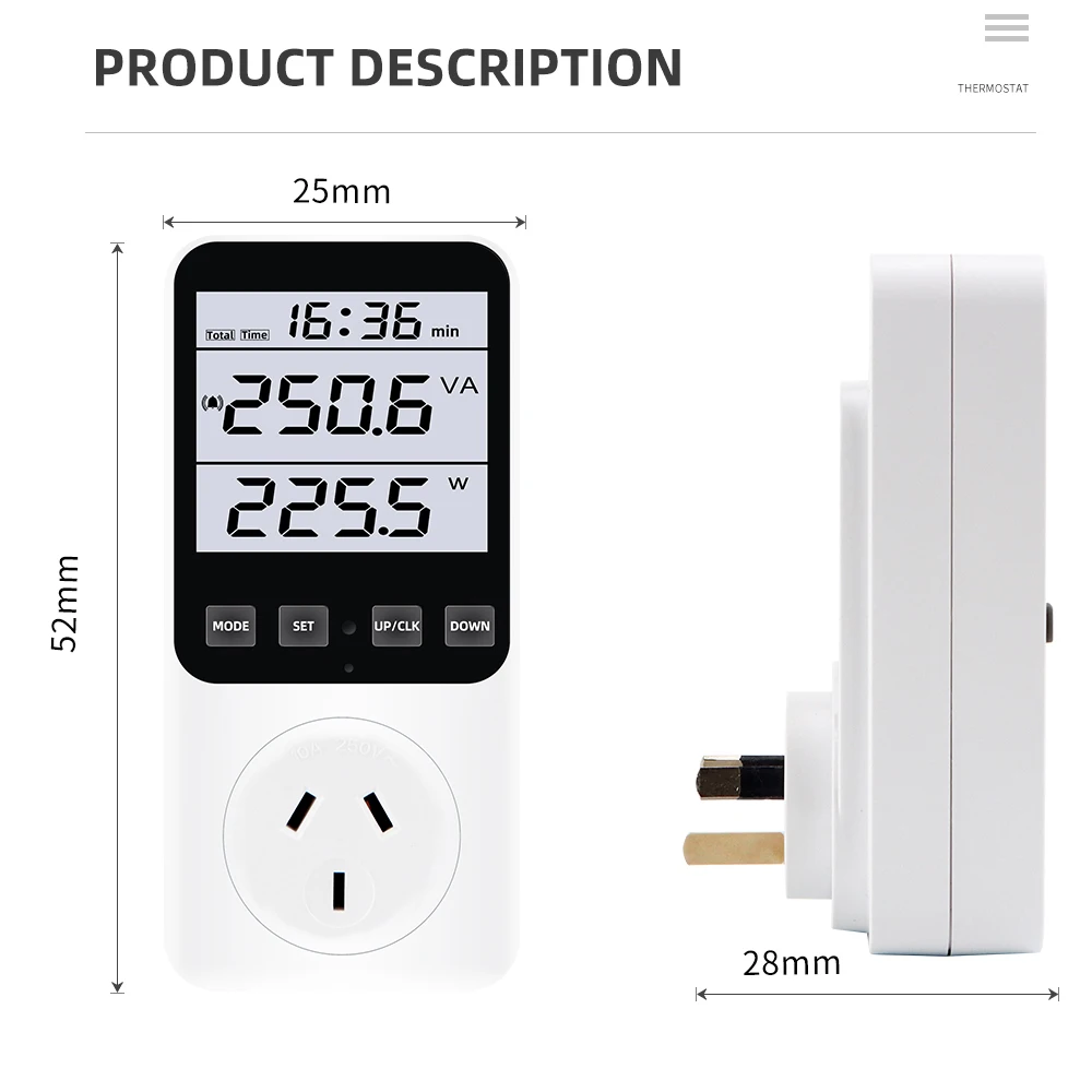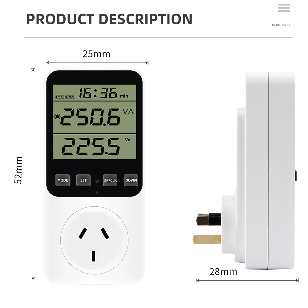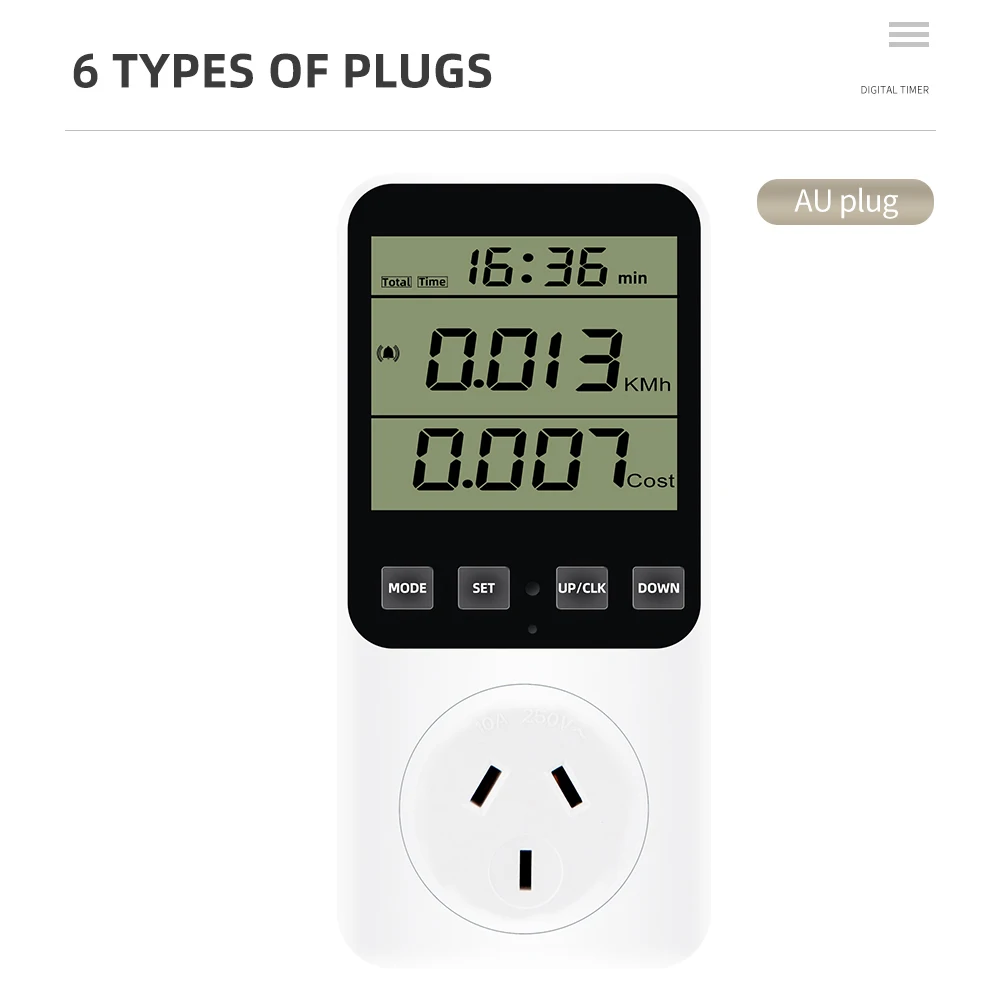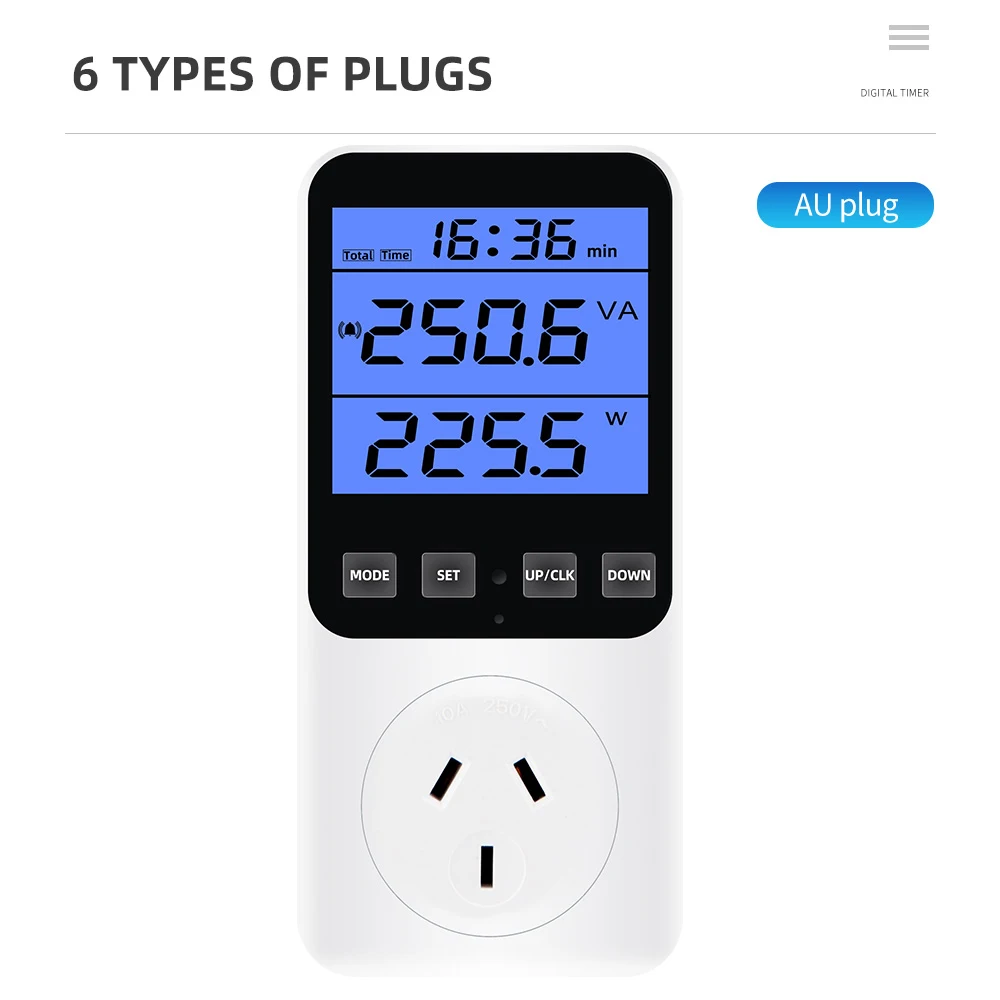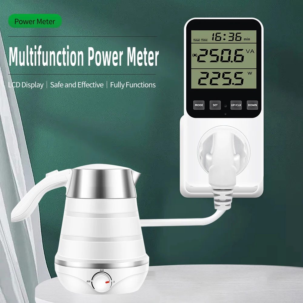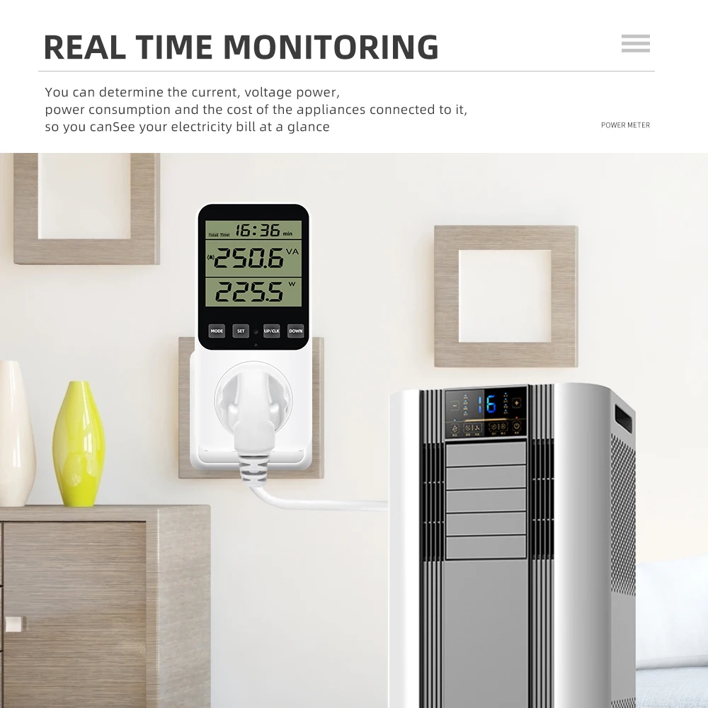 * 14 modos de medición: medir el consumo de energía (W), potencia aparente (VA), consumo de energía, factura de energía, voltaje (V), frecuencia (Hz), amperaje (A), factor de potencia (PF), potencia máxima/mínima, tiempo acumulado (kWh), tono de tecla, alarma de sobrecarga, alarma de consumo de energía, Visualización de pulso y estado de cada factura de energía. (No cuenta en modo de espera) Un ayudante perfecto para el hogar para ahorrar electricidad y dinero.