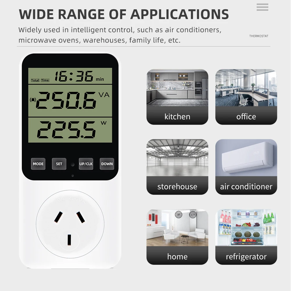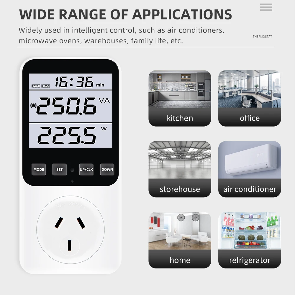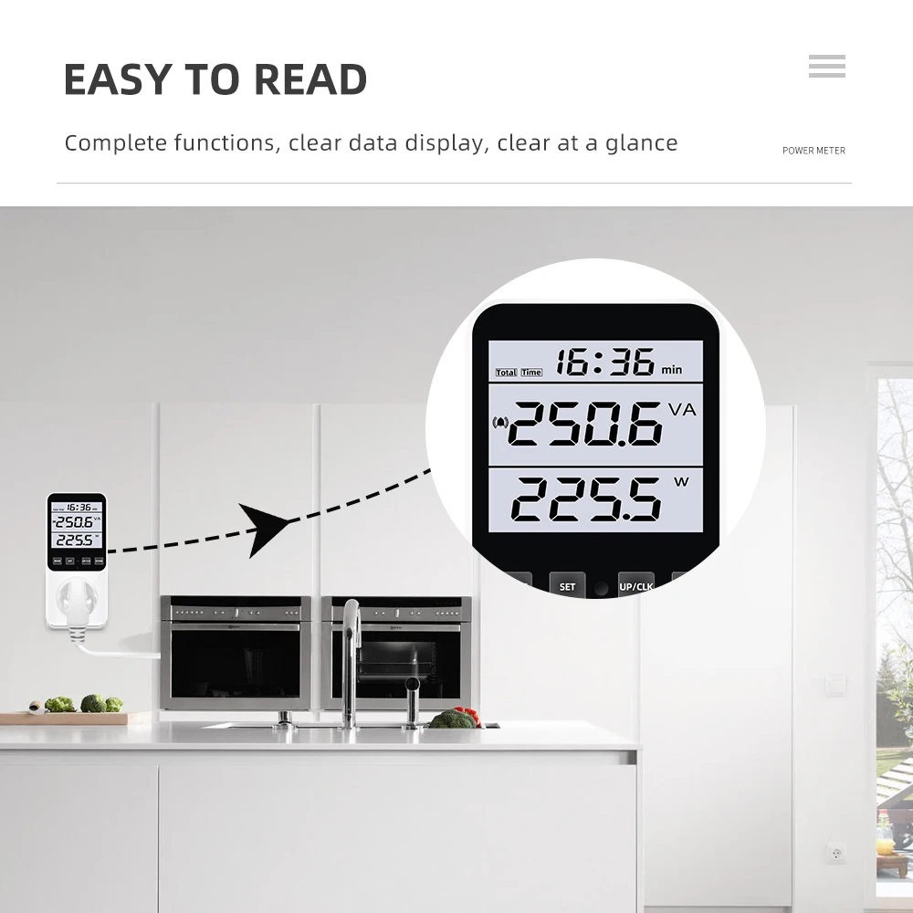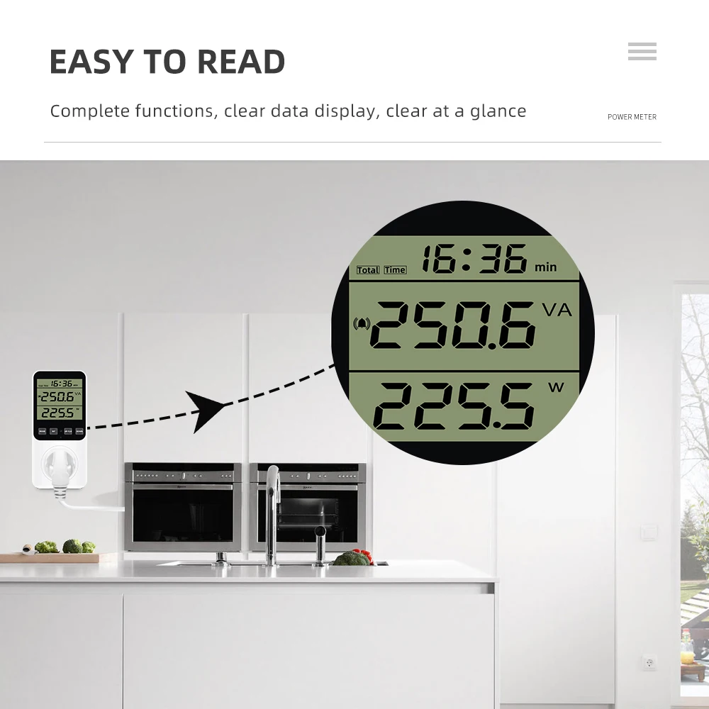 * Monitoreo de electrodomésticos: Instale un medidor de energía entre los electrodomésticos y la toma de corriente. El medidor mide el consumo de energía del aparato y calcula automáticamente la factura de electricidad solo cuando el aparato está funcionando a más de 2 vatios. Adecuado para ordenadores, consolas de juegos, impresoras, televisores, refrigeradores, lavadoras, secadoras, enrutadores, etc.