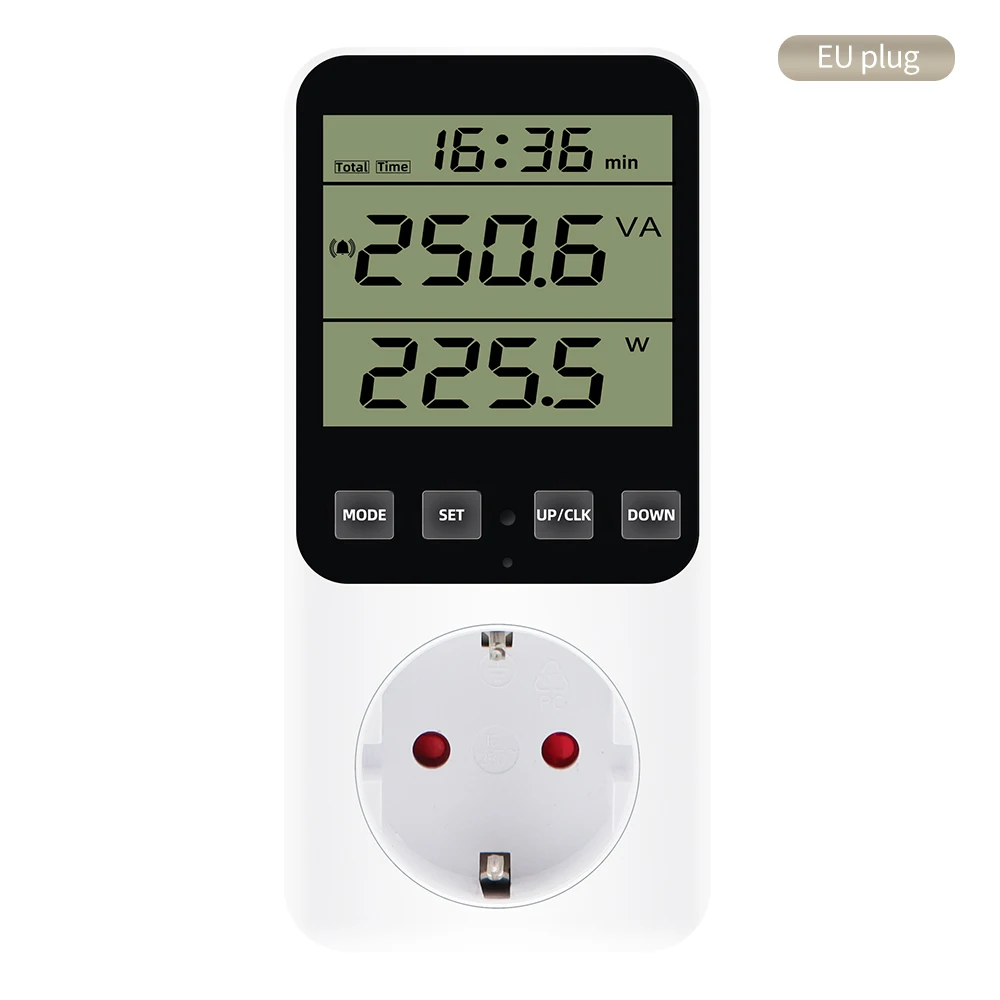 Vatímetro LCD Digital AC 220V Medidor de potencia Enchufe DE LA UE Analizador de consumo de energía Voltímetro Amperímetro Monitor de costo de electricidad