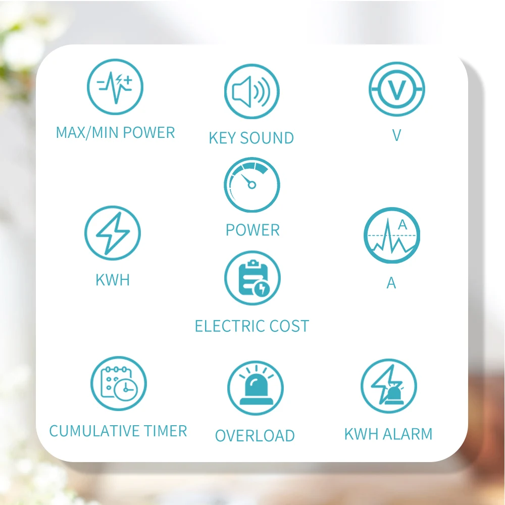 * La potencia de carga excede el valor de sobrecarga, el consumo de electricidad excede el valor de alarma KWH y el costo de la electricidad excede el valor de alarma de costo, la pantalla LCD muestra "sobrecarga", "Alarma KWh" o "Alarma de costo" y el altavoz incorporado da un continuo. Ideal para controlar el consumo de energía de los electrodomésticos.