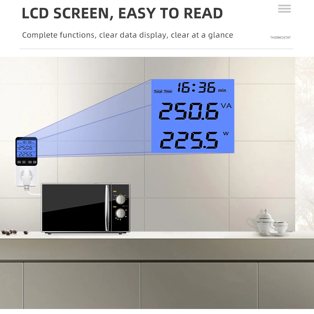 * Pantalla LCD mejorada: el medidor de potencia para enchufe de pared con amplio ángulo de visión es perfecto para leer y grabar datos desde cualquier ángulo. Ya no tiene que pararse frente a la pantalla e inclinarse sobre los números, especialmente si el medidor de electricidad no está a la altura de los ojos o solo es visible desde un ángulo.