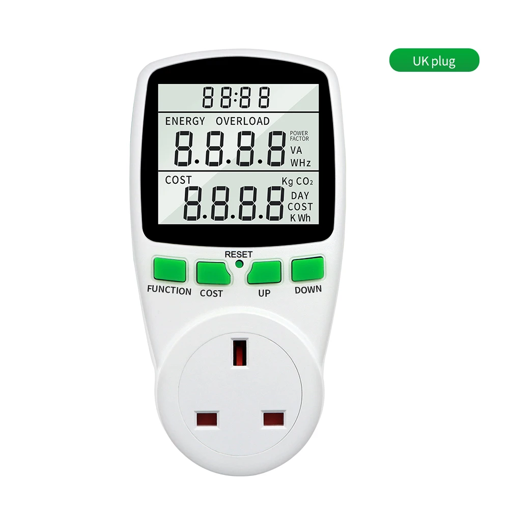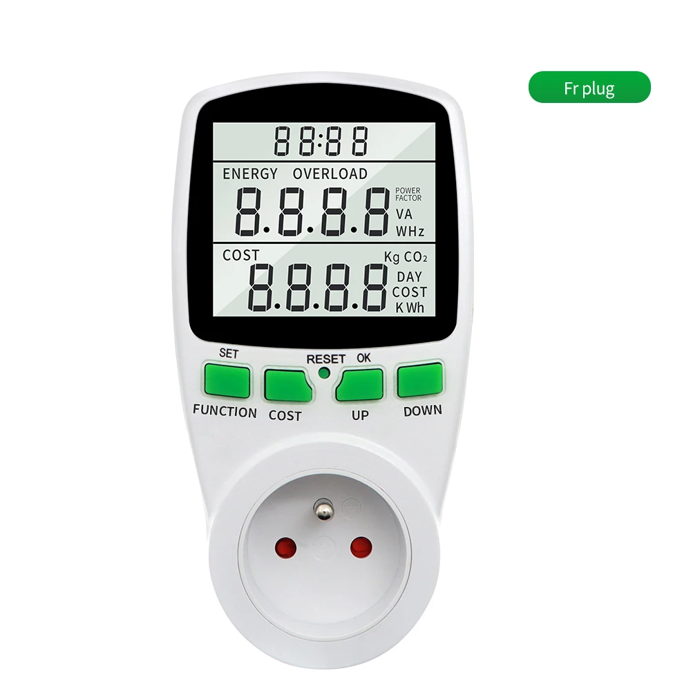 Medidor de vatímetro Digital, medidor de potencia LCD, analizador de medidor de energía, medidor de potencia, electricidad Kwh, UE, EE. UU., Reino Unido, AU, toma de medición francesa