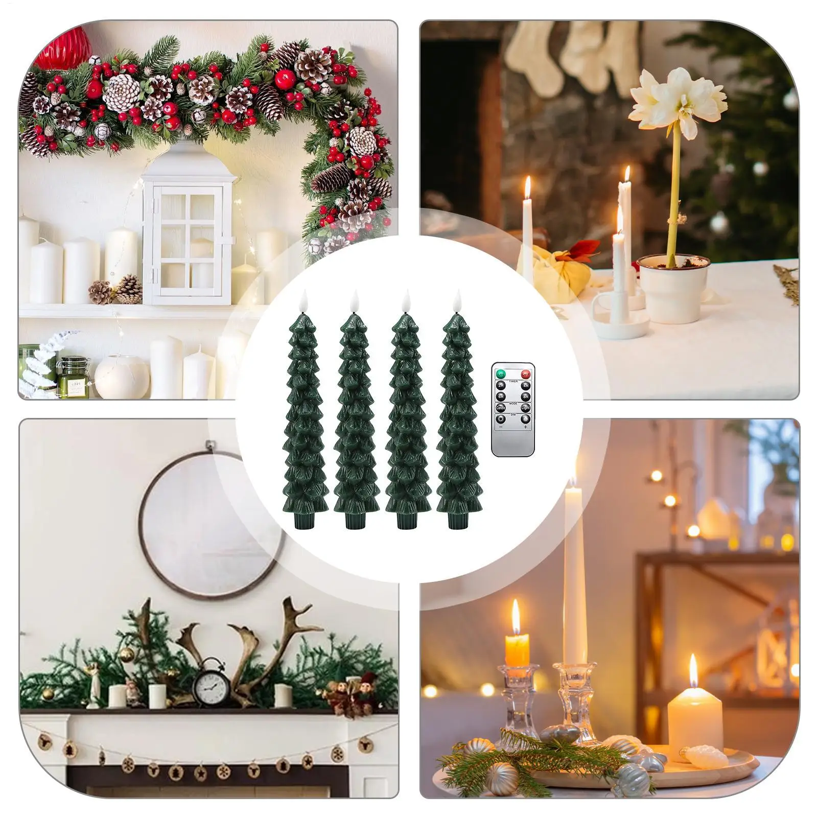 4.Ampliamente aplicable: las velas para árboles de Navidad sin llama sirven como un complemento elegante para mesas de comedor y alféizares de ventanas, al tiempo que garantizan la seguridad para bodas o celebraciones navideñas cerca de chimeneas, mejorando el ambiente festivo sin riesgo de llamas abiertas.