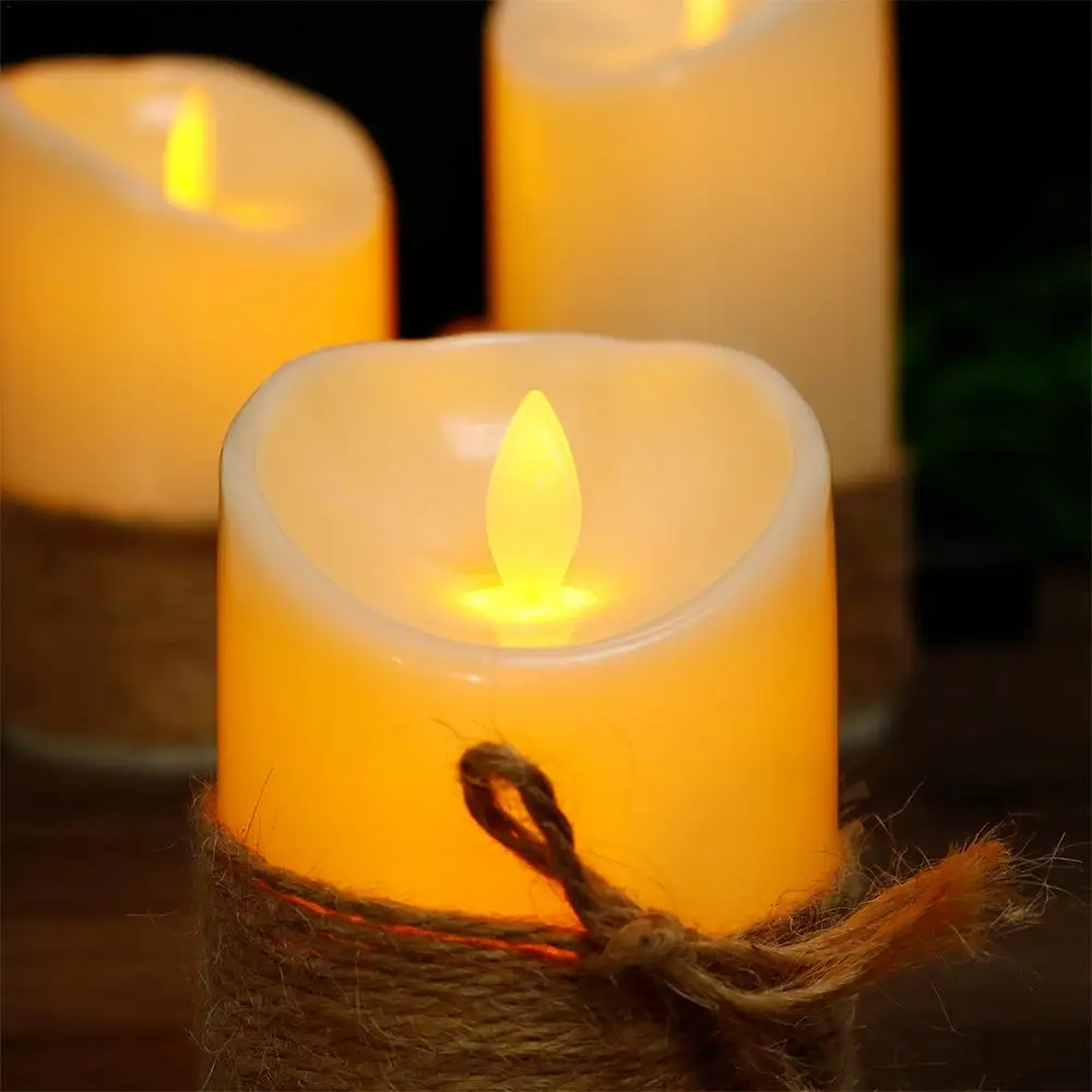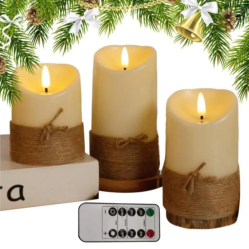 Lista de embalaje:1 juego x velas de pilar sin llama (3 piezas)