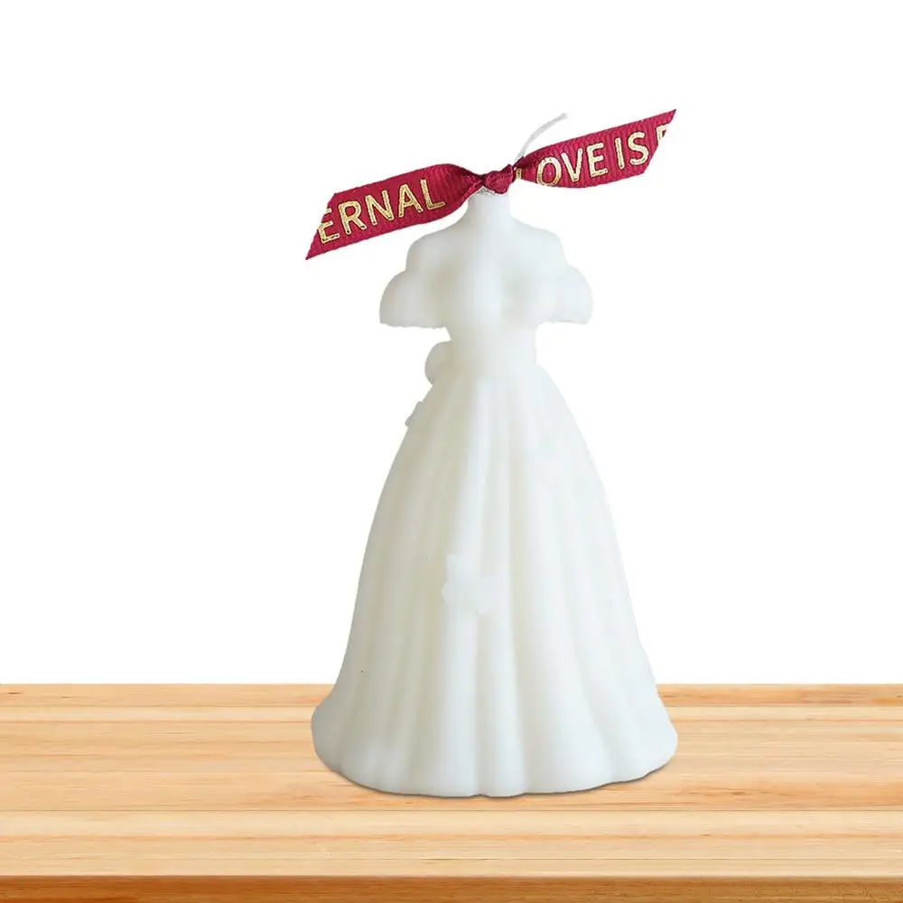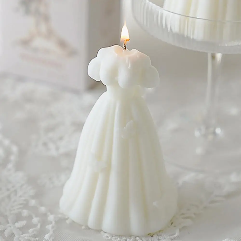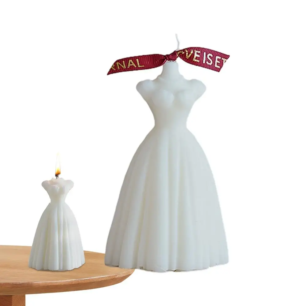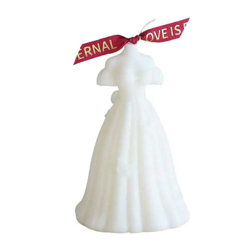 2. Novedoso diseño de vestido de novia: esta elegante y hermosa vela de boda iluminará su dormitorio con su apariencia de vestido de novia blanco que sirve como una gran decoración.