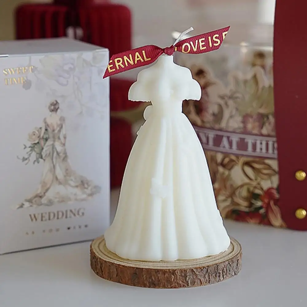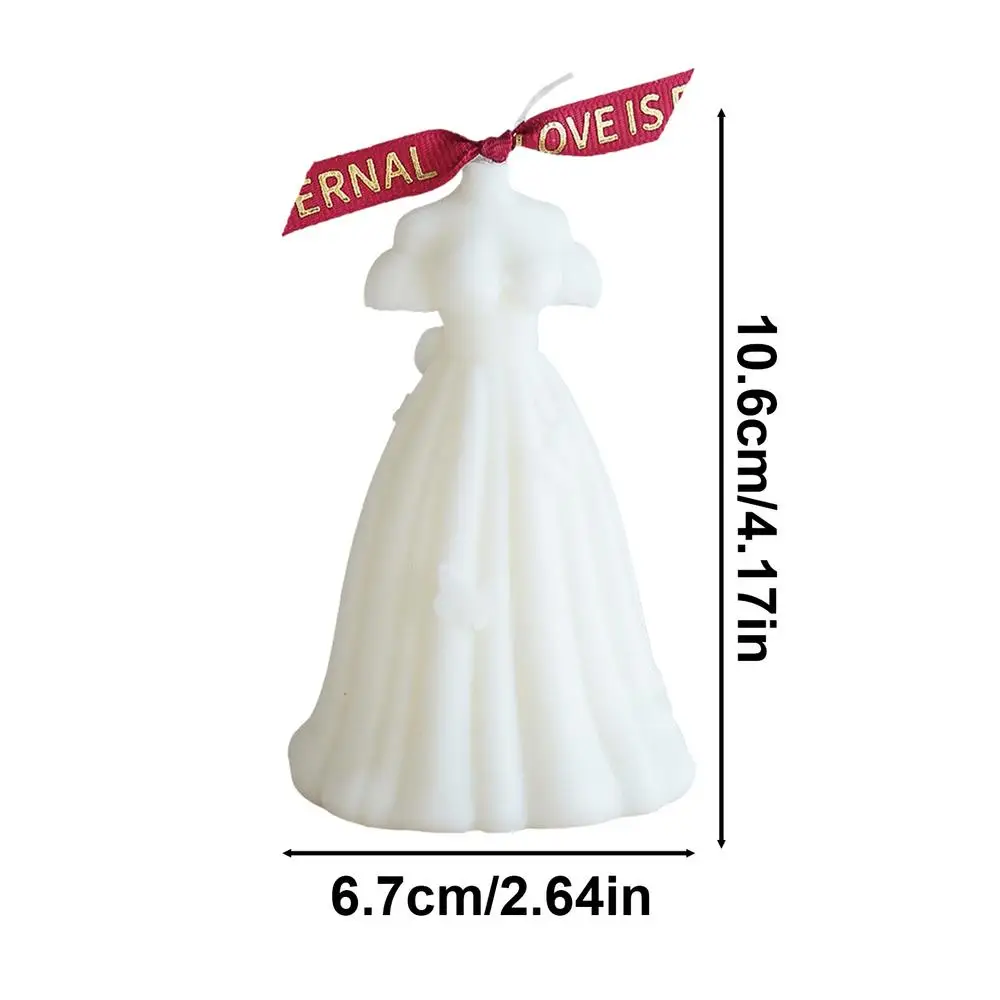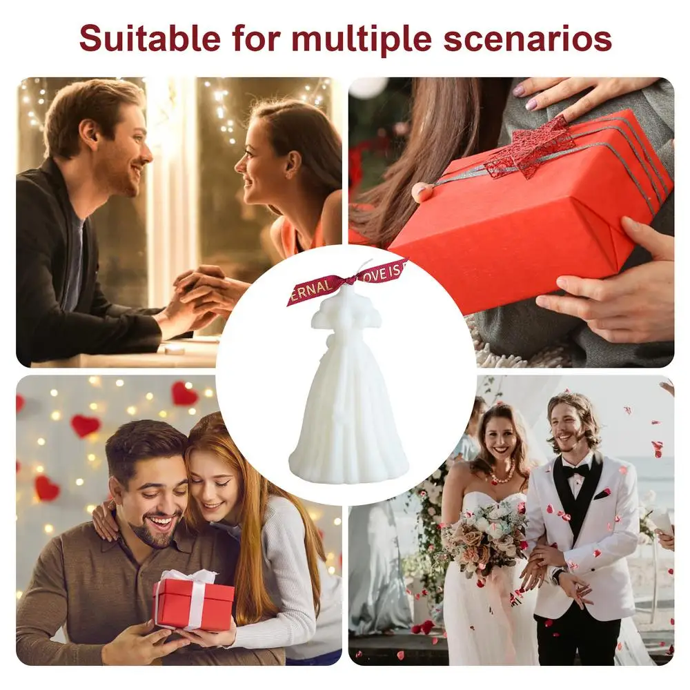2. Novedoso diseño de vestido de novia: esta elegante y hermosa vela de boda iluminará su dormitorio con su apariencia de vestido de novia blanco que sirve como una gran decoración.