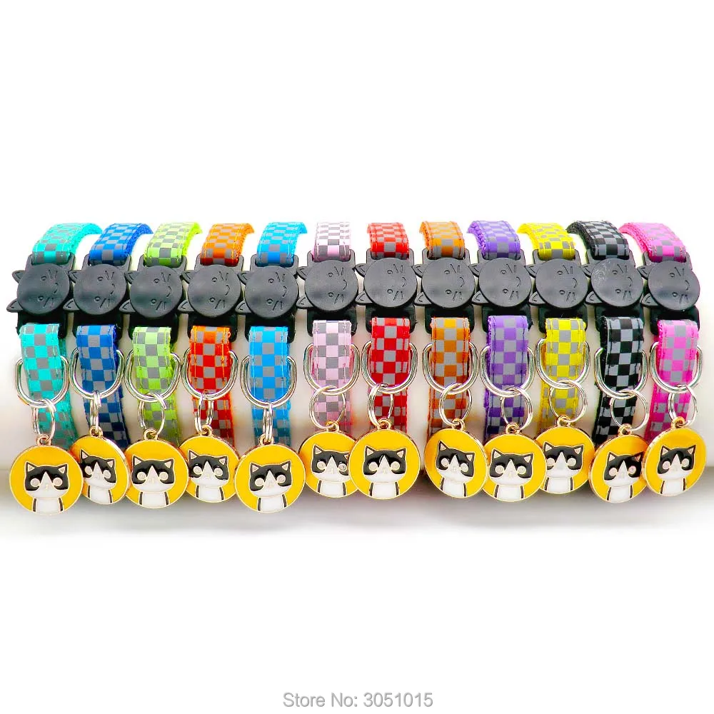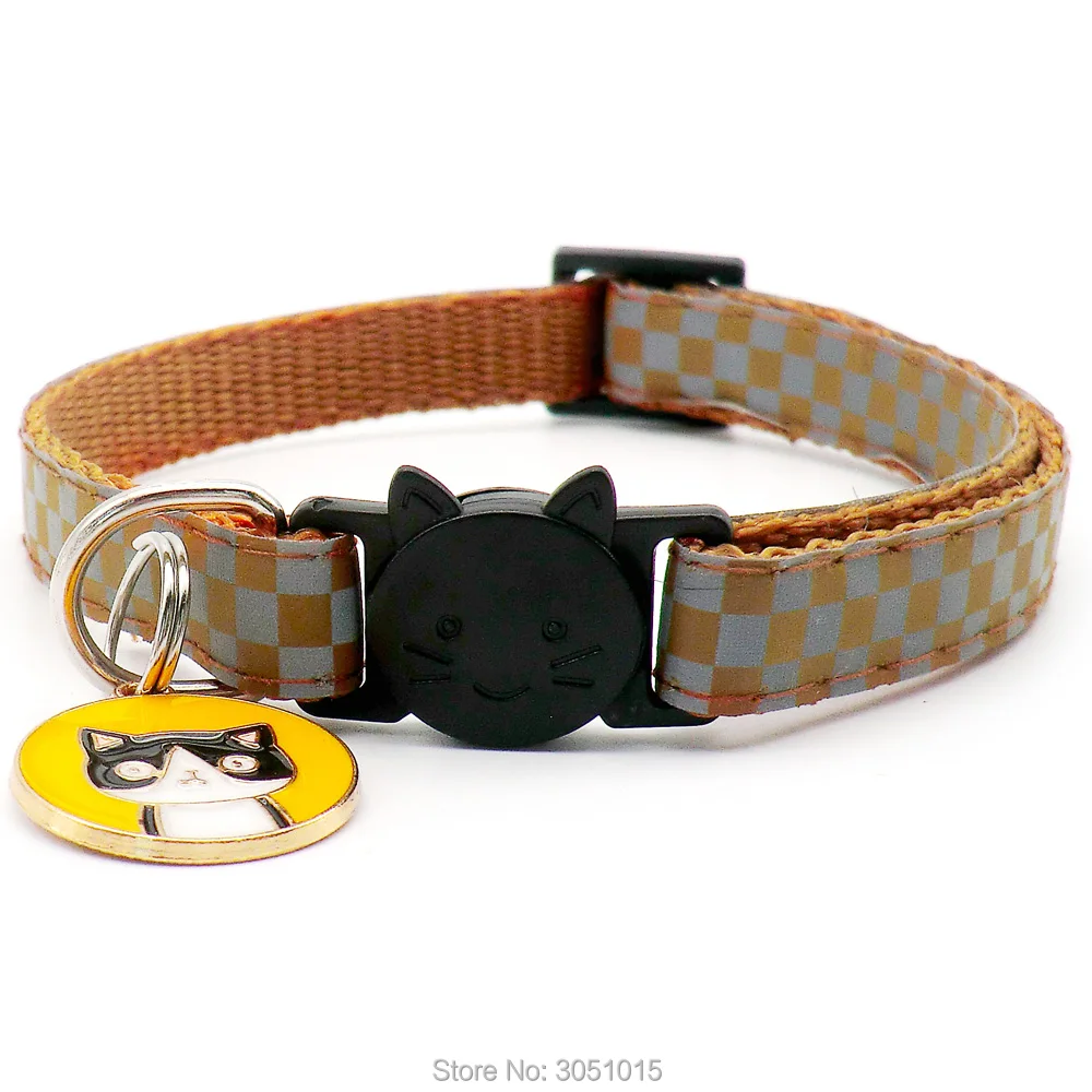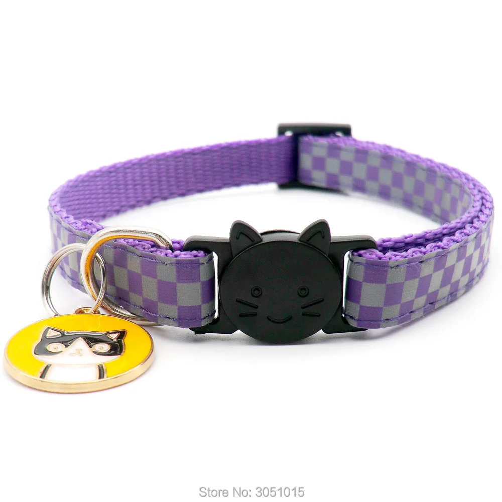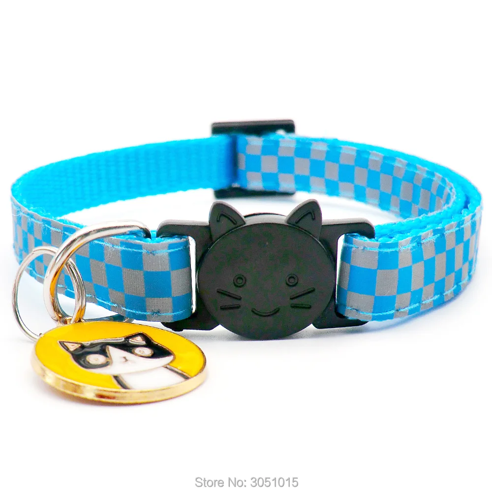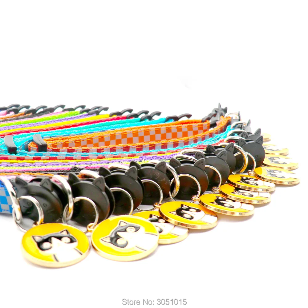 Venta al por mayor 100 Uds. Collar reflectante para gato, etiqueta de identificación personalizada para perro, accesorios para collar, etiqueta de collar para gato de tamaño ajustable antipérdida con seguridad de campana