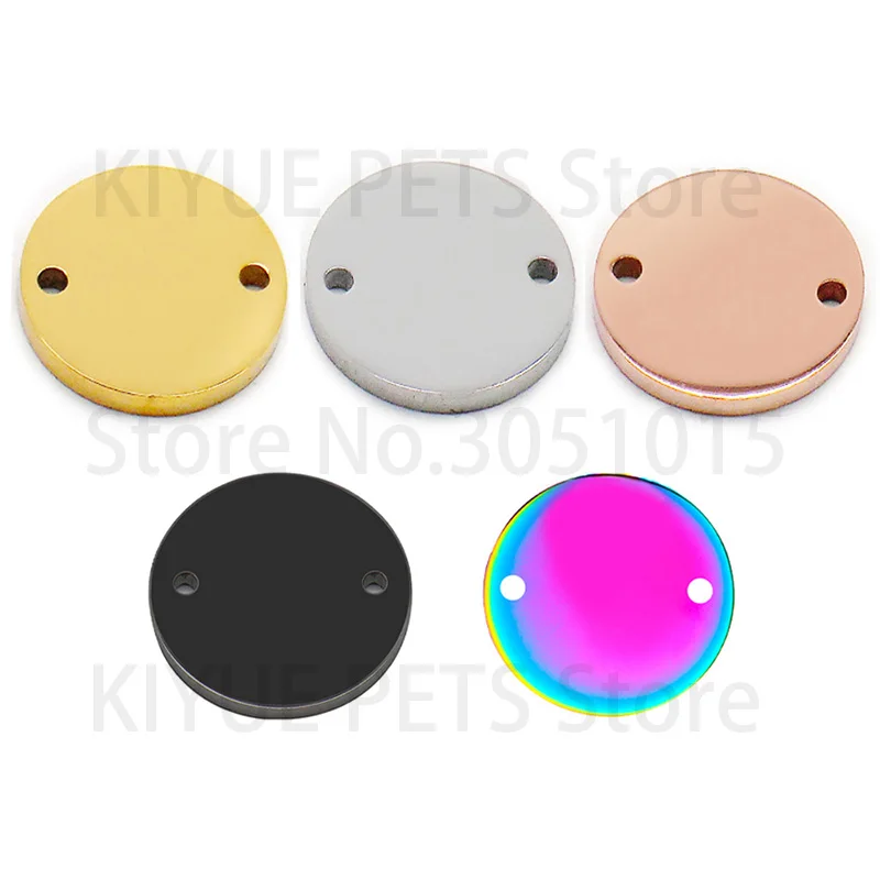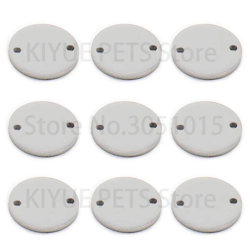 Etiqueta personalizada para perro y gato, 100 Uds., etiquetas de identificación grabadas en blanco de acero inoxidable para Collar de perro, placa de identificación redonda antipérdida para mascota, venta al por mayor