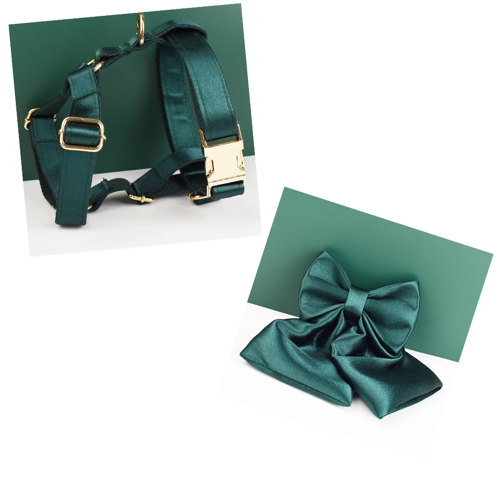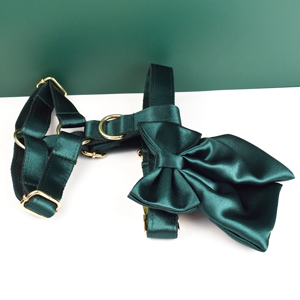 Venta caliente diseño personalizado Logo sublimación impreso poliéster accesorios para mascotas collar de perro correas arnés arco conjunto cristal 11