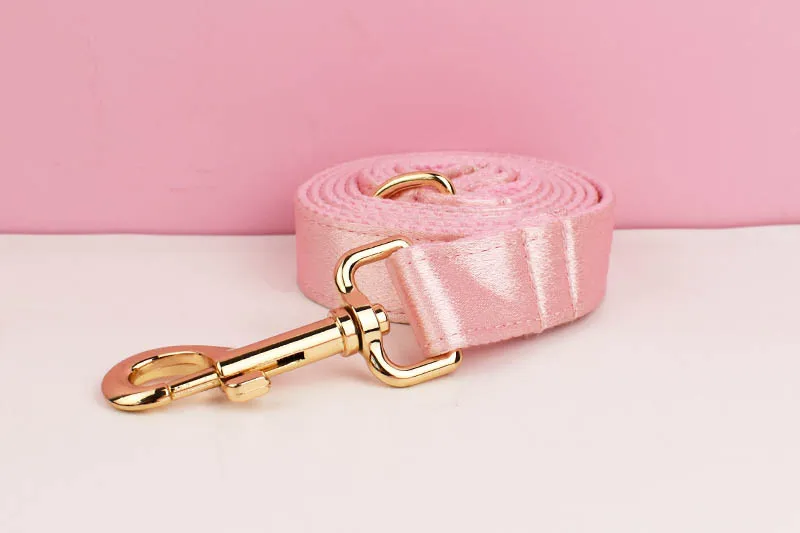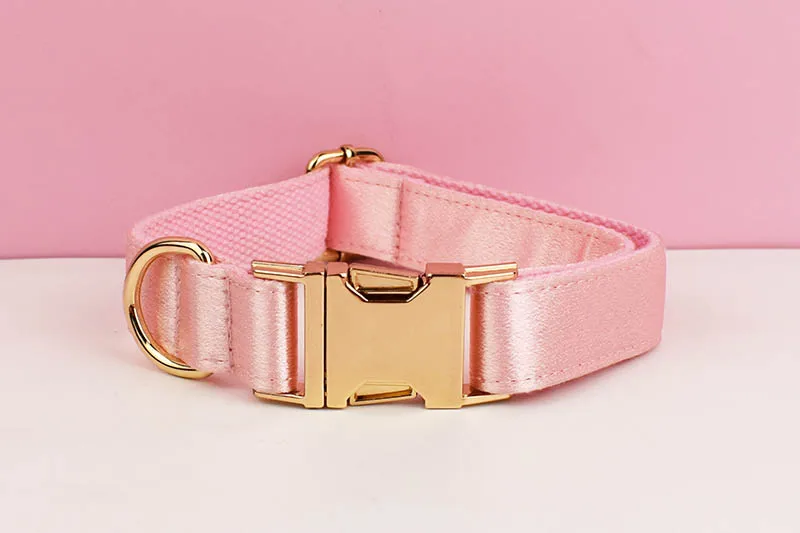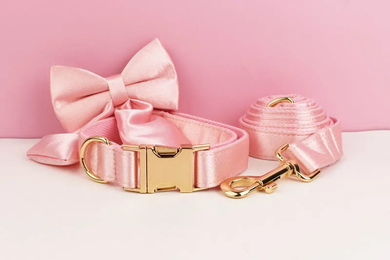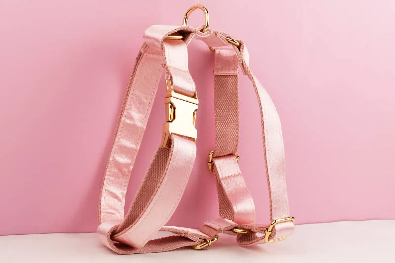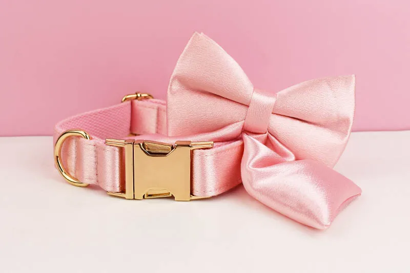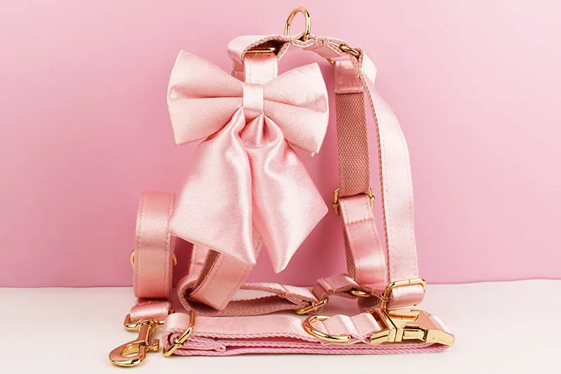 Venta caliente de diseño personalizado Logo sublimación impresa poliéster accesorios para mascotas Collar de perro correas arnés arco conjunto Rosa cristal