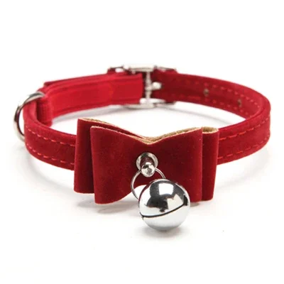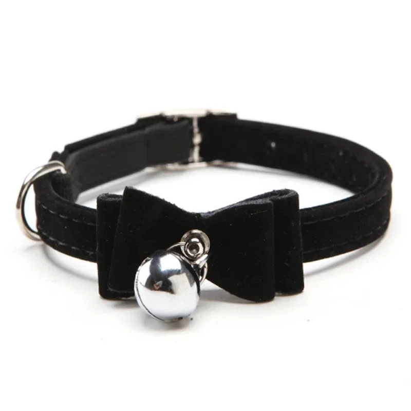 Collar elástico de seguridad para gatos, pajarita con campana, Collar para perros pequeños y gatos, terciopelo suave seguro, 6 colores, pajarita para gatitos, collar, suministros para mascotas