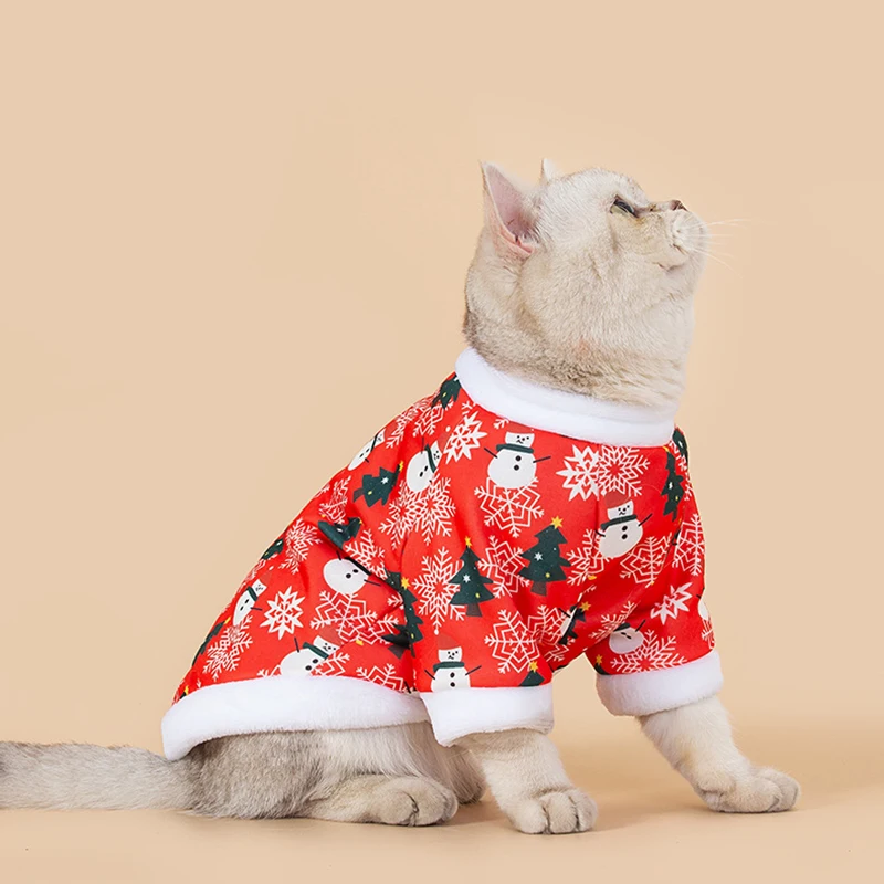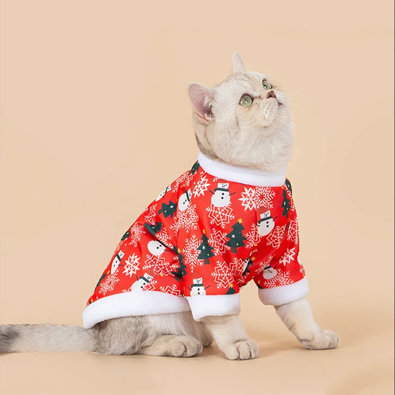 Venta caliente de ropa navideña para mascotas en otoño e invierno, ropa cómoda y cálida con estampado de dibujos animados para gatos y perros