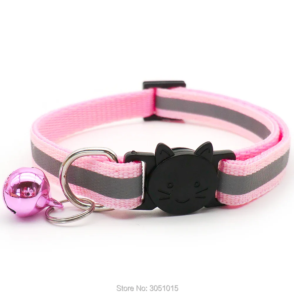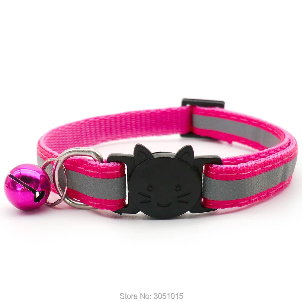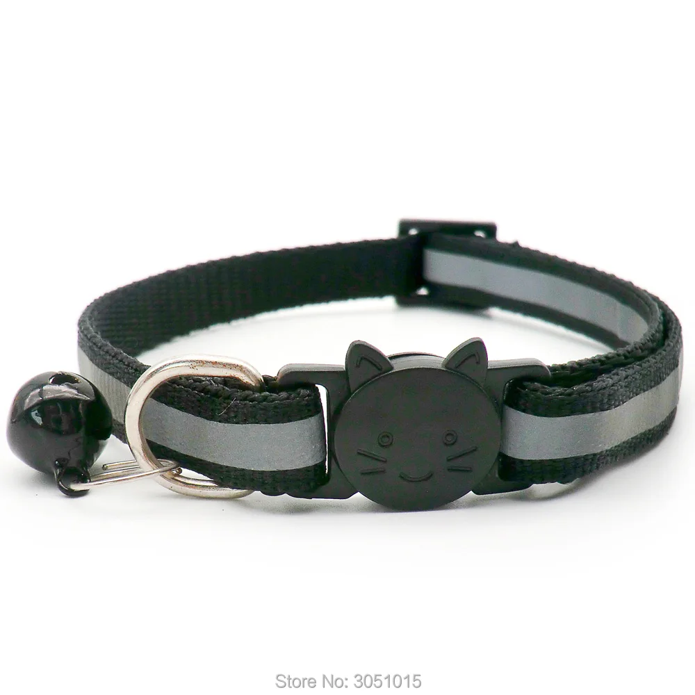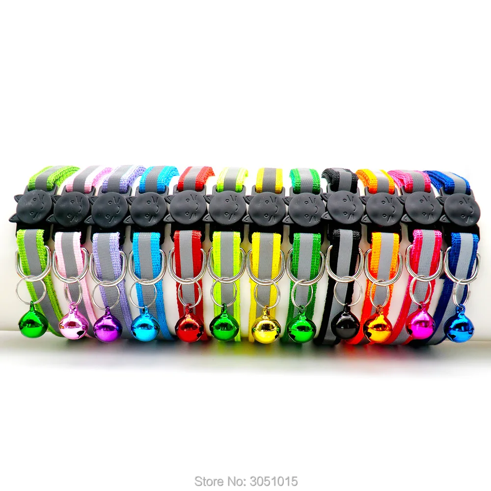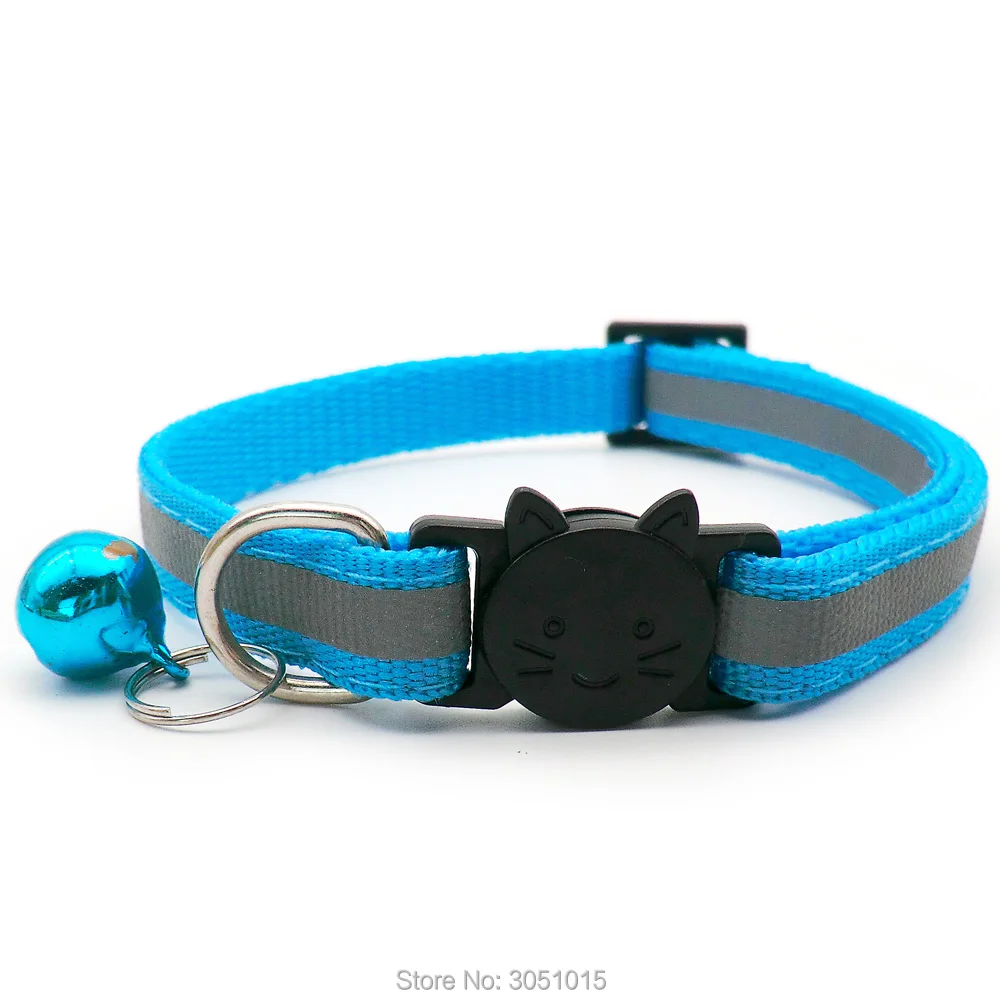 Venta al por mayor 100 Uds botón de cara de gato seguridad reflectante para collares de perro y gato ajustable con collar con dije de campana para cachorros