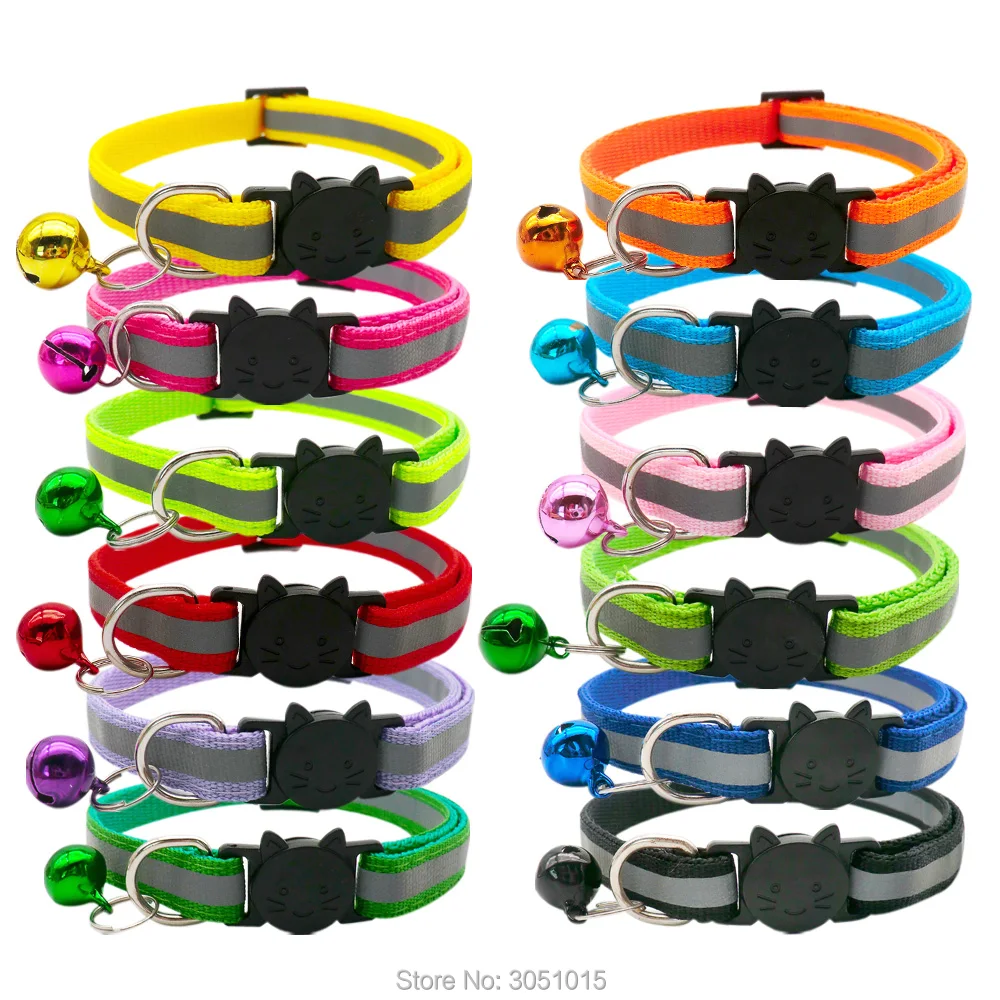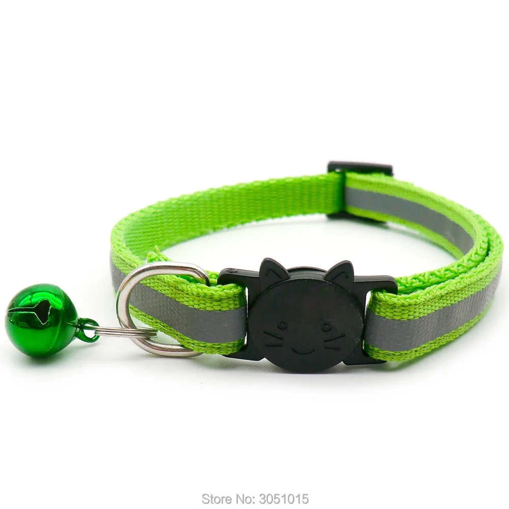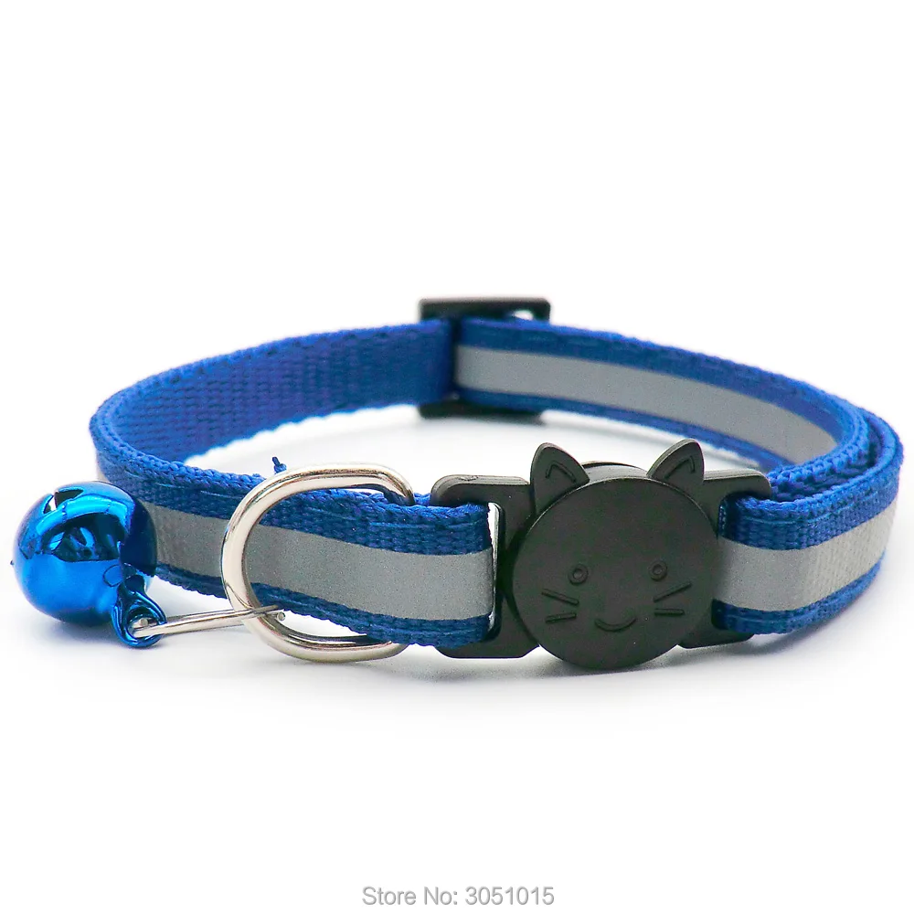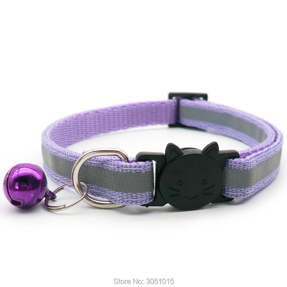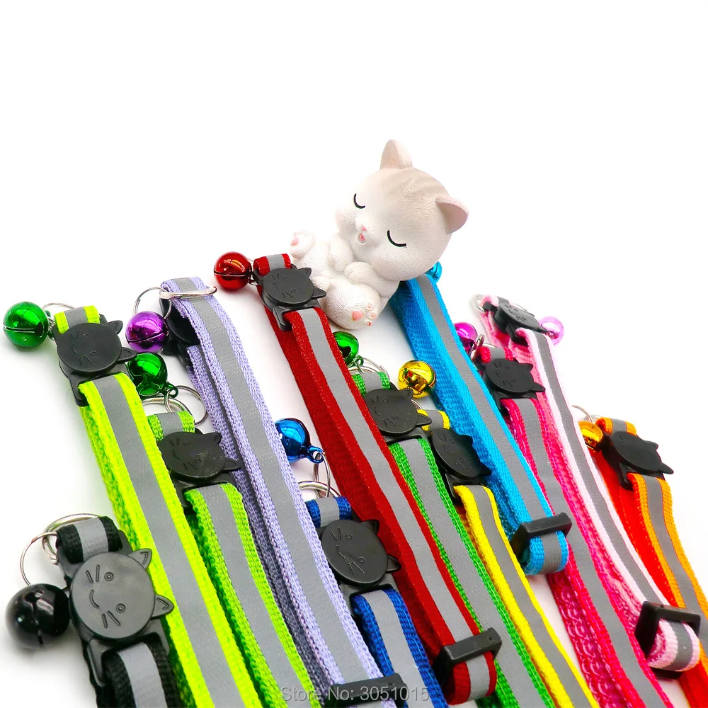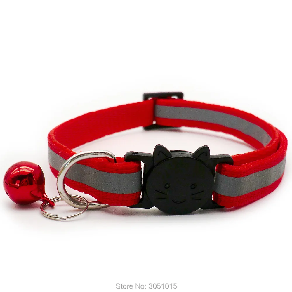 Venta al por mayor 100 Uds botón de cara de gato seguridad reflectante para collares de perro y gato ajustable con collar con dije de campana para cachorros