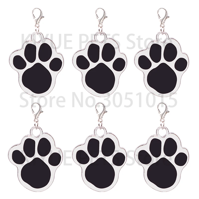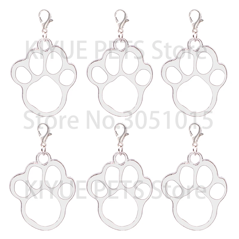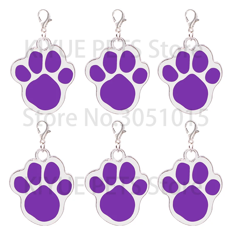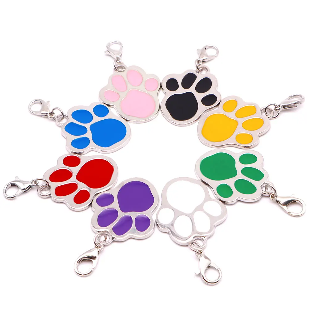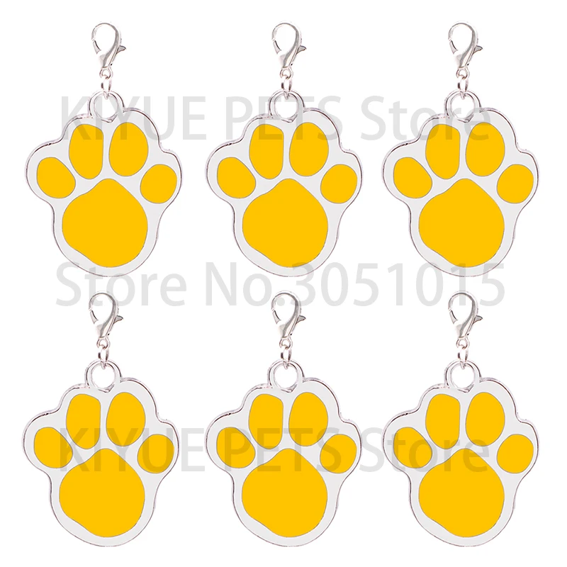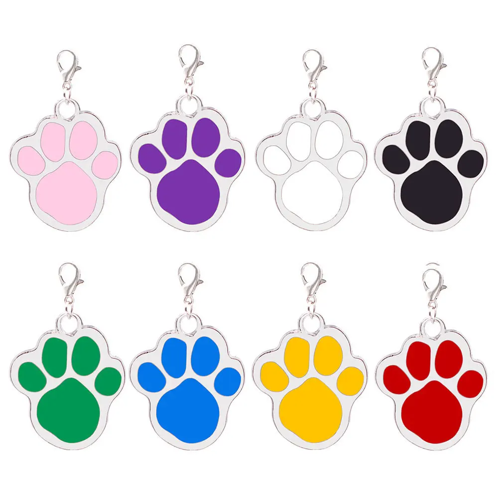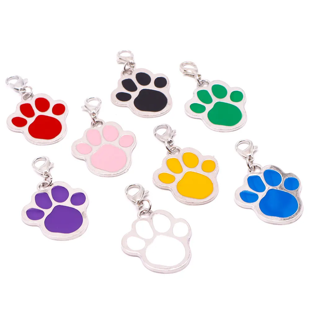 Venta al por mayor, 100 Uds., brillo personalizado, forma de pata de identidad, etiqueta para perro mascota, suministros grabados personalizados para perros, nombre de gato, teléfono, accesorios para mascotas