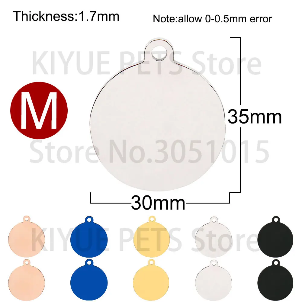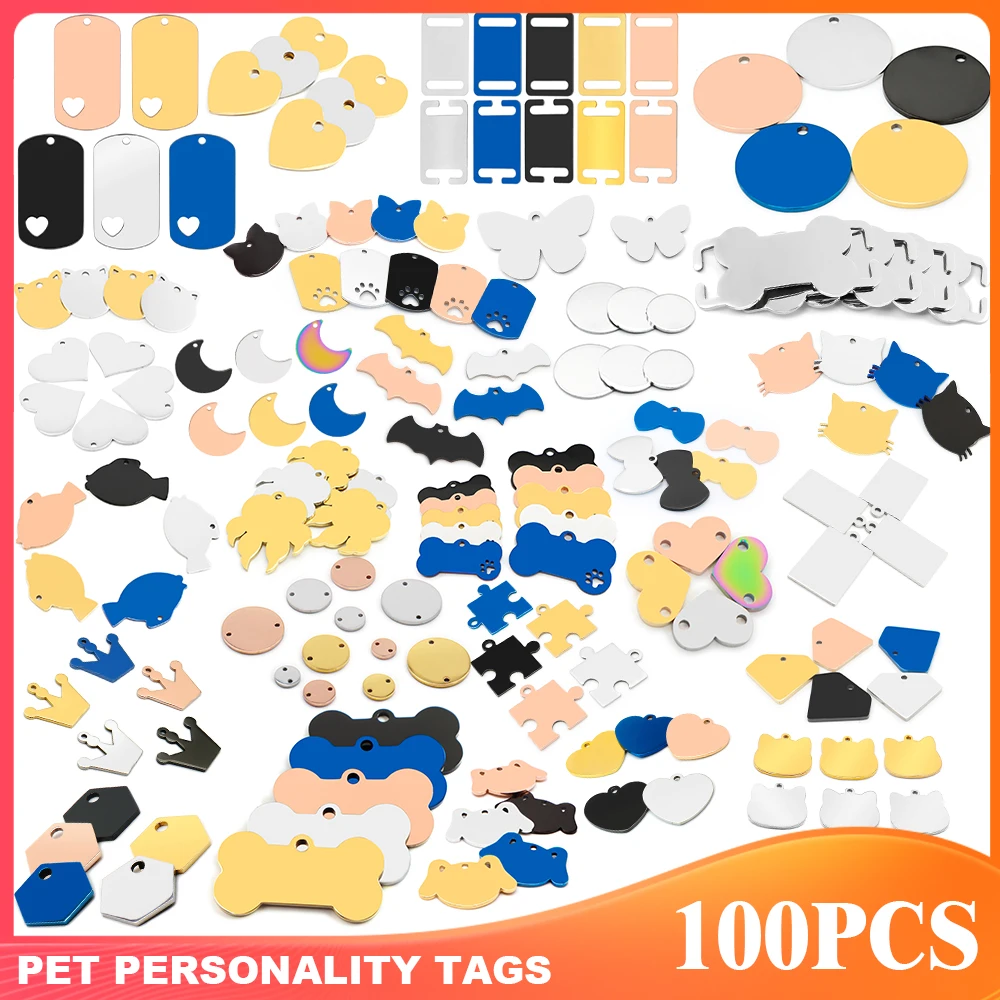 Venta al por mayor, 100 Uds., mezcla aleatoria, múltiples estilos, etiqueta personalizada para perro mascota, Collar antipérdida grabable en blanco de acero brillante, etiqueta con nombre de gato