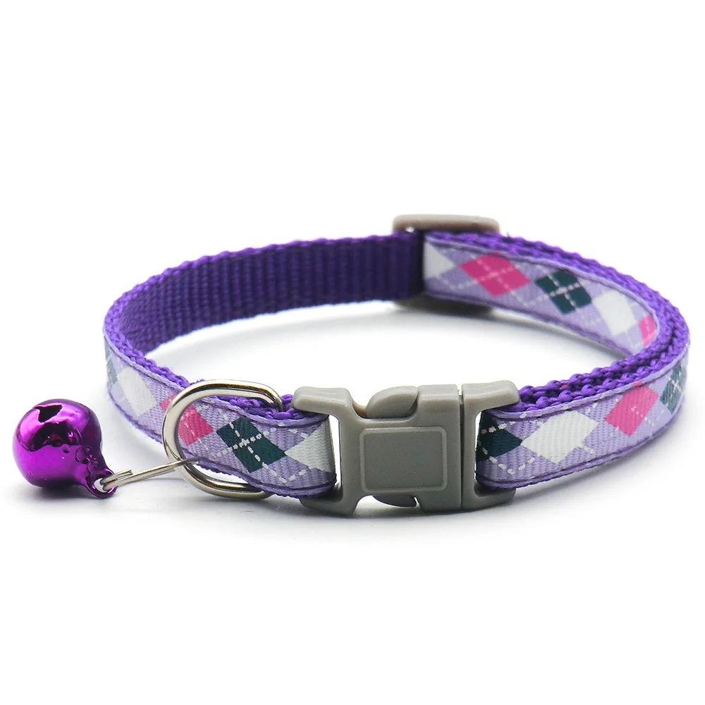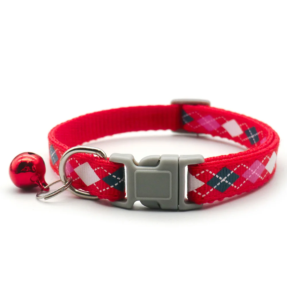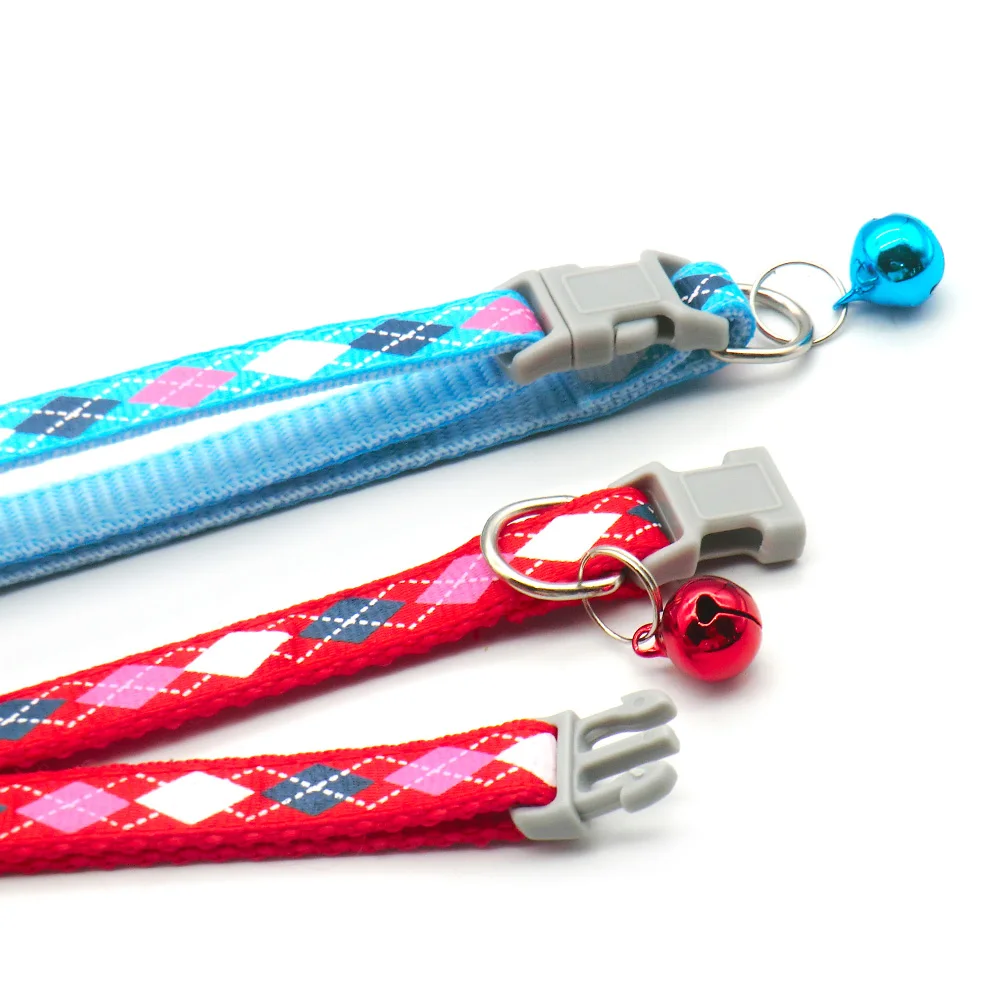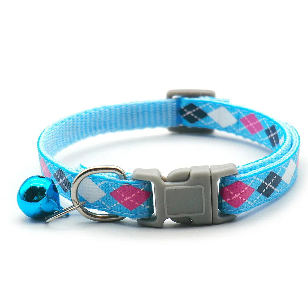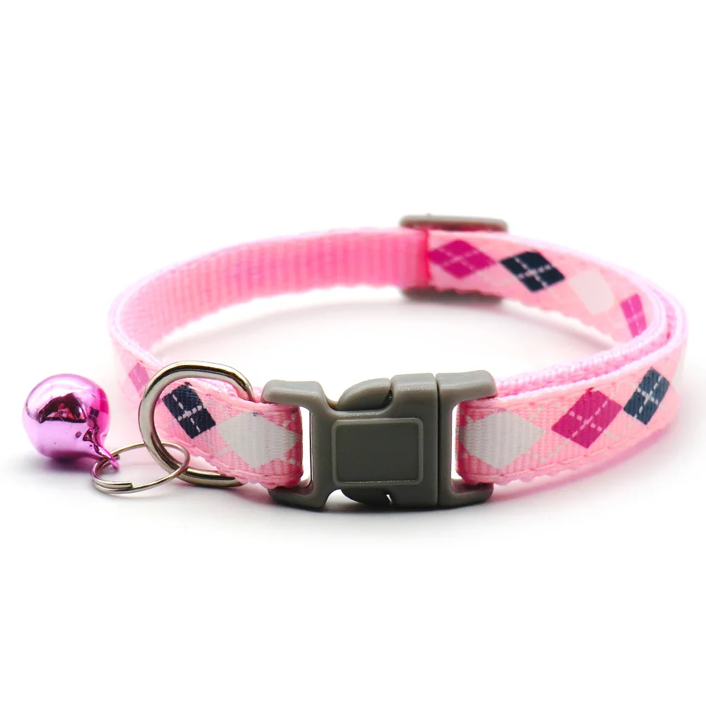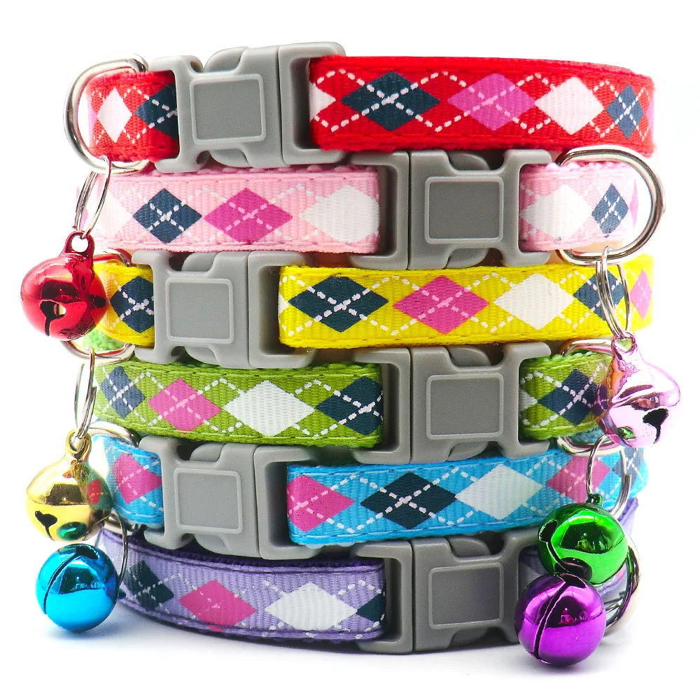 Venta al por mayor100 Uds. Collar estampado de celosía de diamantes anillo de cuello de campana encantador Animal identificar suministros para gato cachorro para accesorios para perros