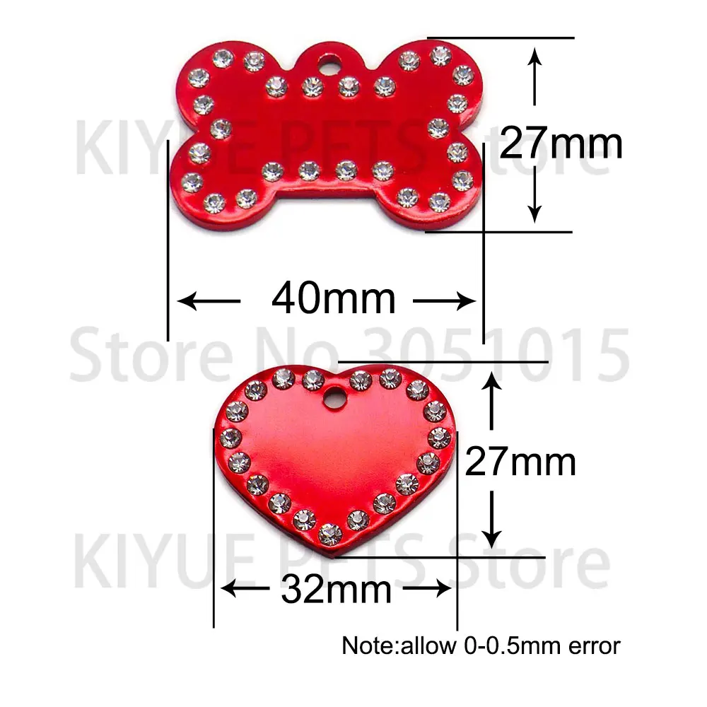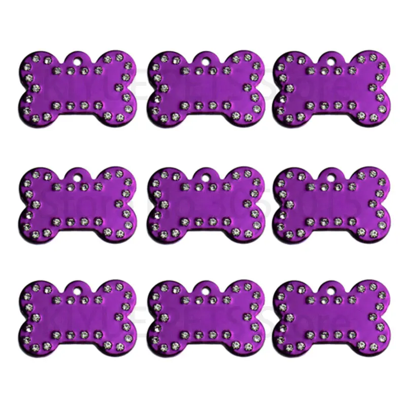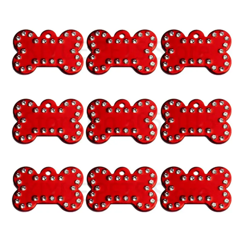 Venta al por mayor 20 piezas 2 MM hueso de perro decoración de diamantes etiqueta de identificación de mascota nombre de amor grabado personalizado número de teléfono gato perro etiqueta de identificación encanto personalizado