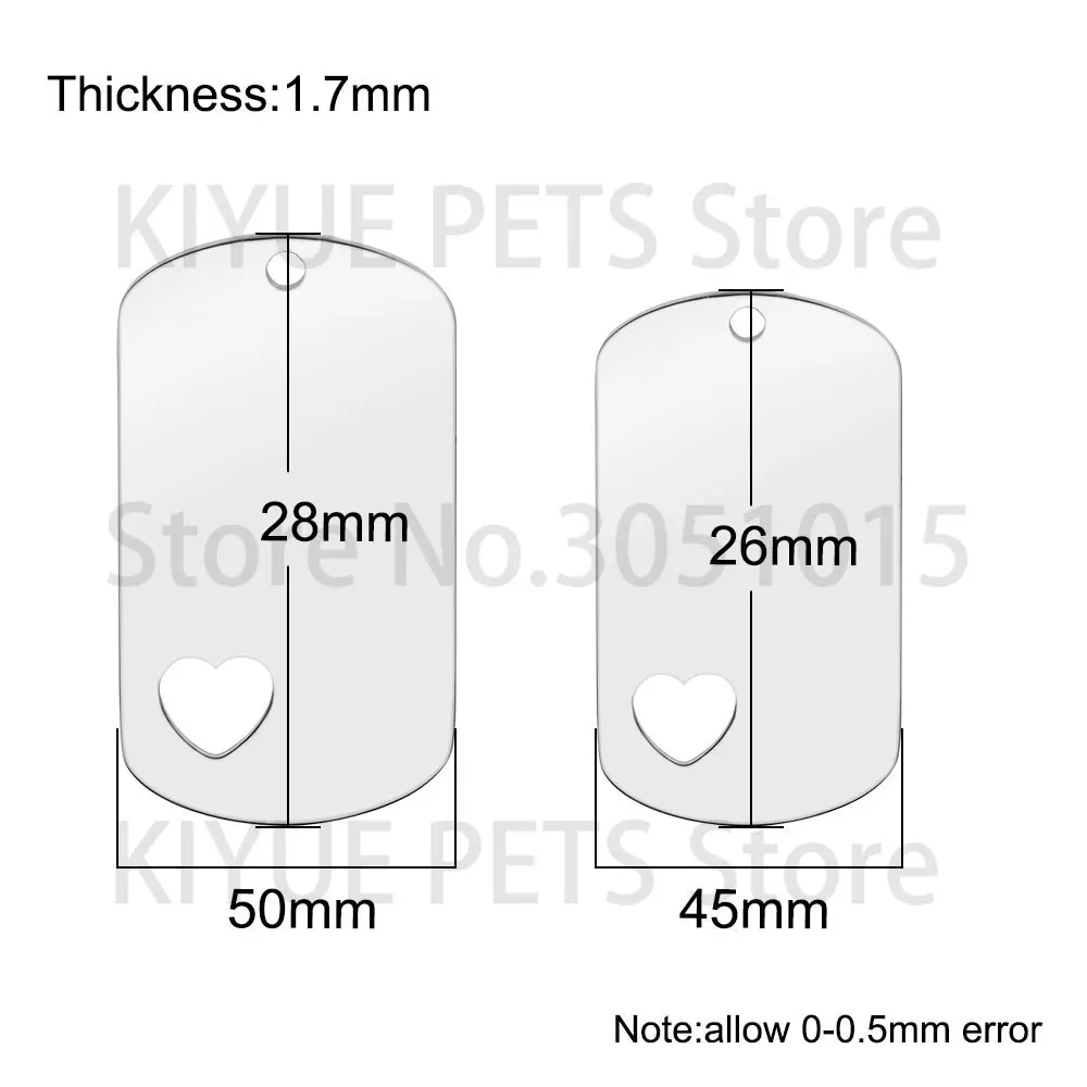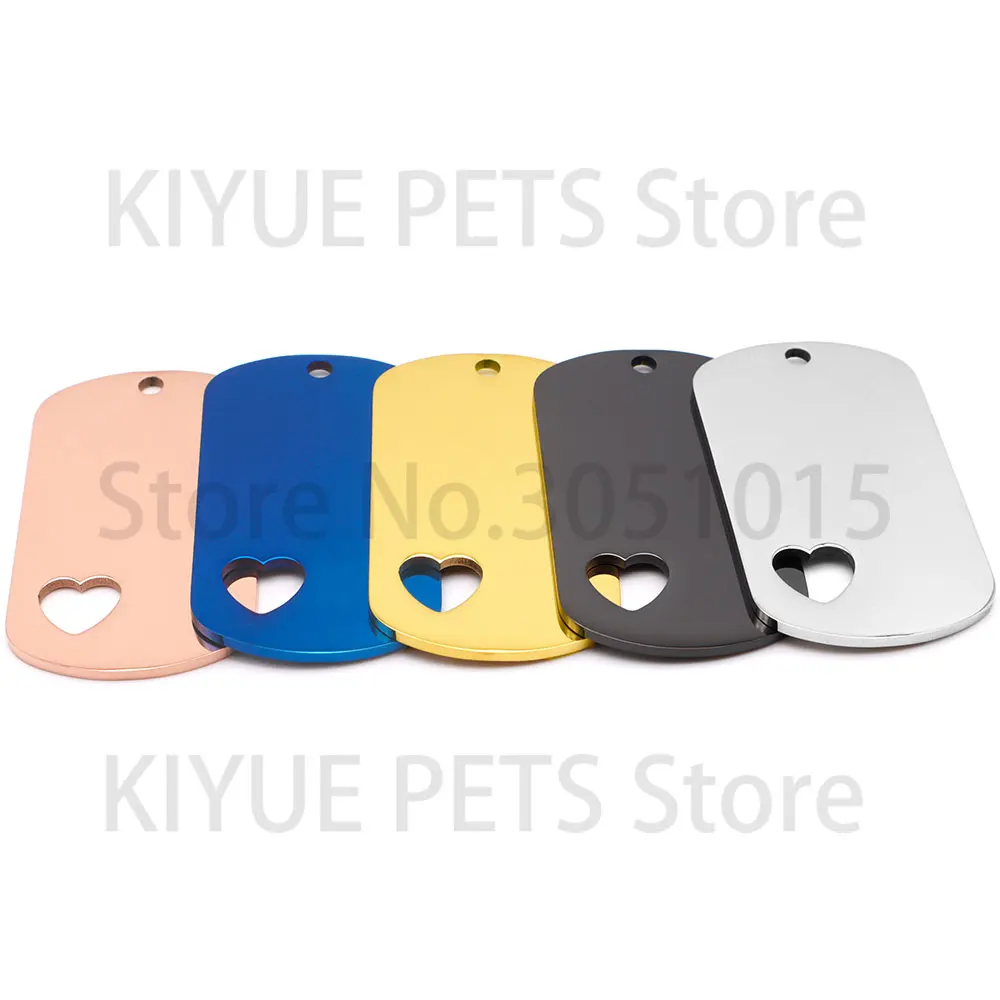 Venta al por mayor, 20 Uds., Collar de acero inoxidable para mascotas, etiqueta colgante de Metal, identificación en blanco, colgante de moda personalizado multicolor opcional, gato