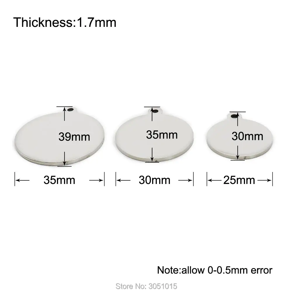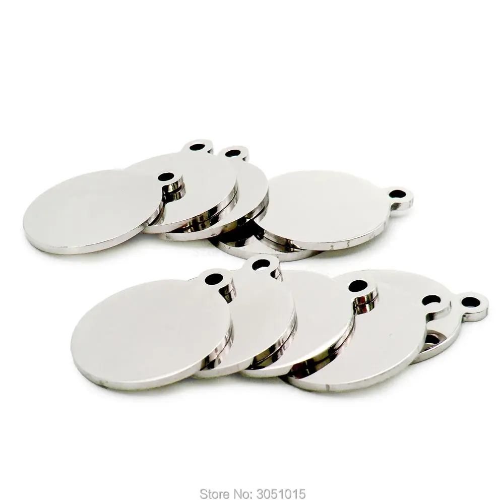 Venta al por mayor, 20 Uds., etiqueta de identificación personalizada de acero inoxidable para perros, gatos, cachorros, placa de identificación de Metal redonda, placa de productos para mascotas