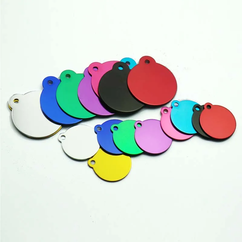 Venta al por mayor, 20 Uds., etiqueta de gato para perro y mascota, suministros de teléfono de aluminio, llaveros con dijes de aleación de forma redonda, placa de etiqueta de tienda