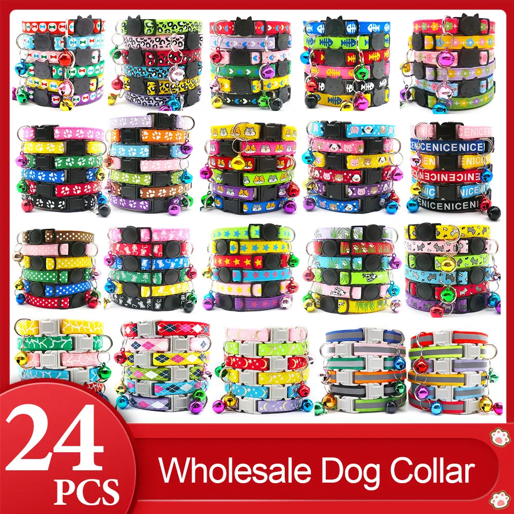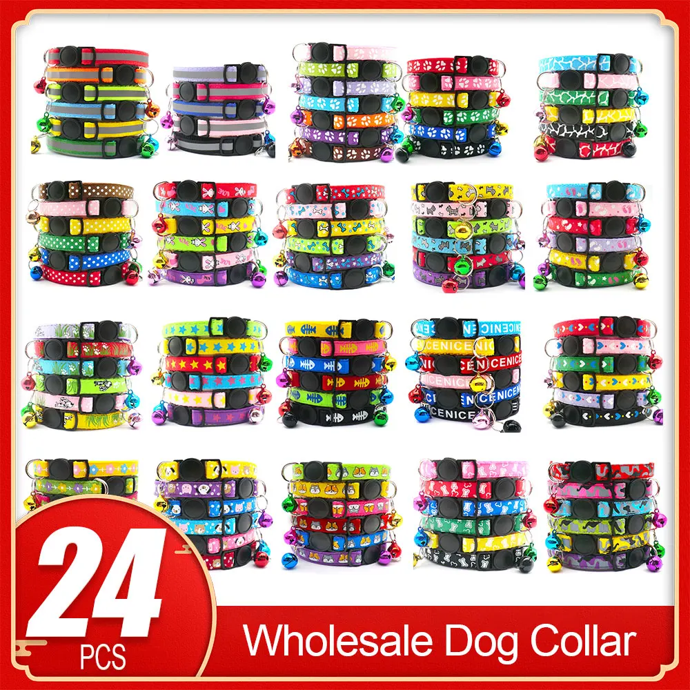 Venta al por mayor 24 Uds con collares de campana delicado seguridad Casual Collar de perro correa para el cuello moda