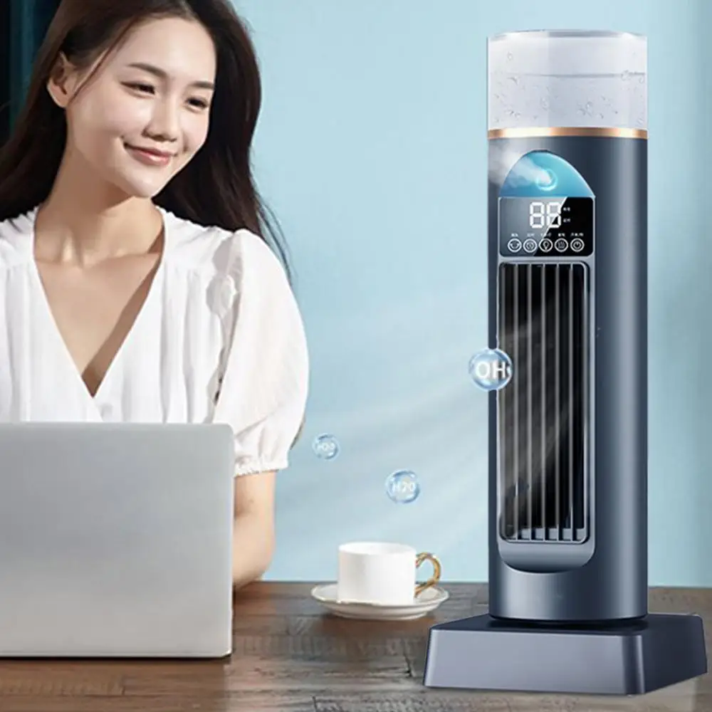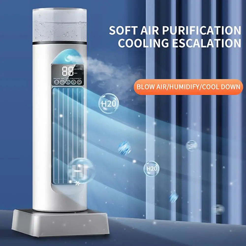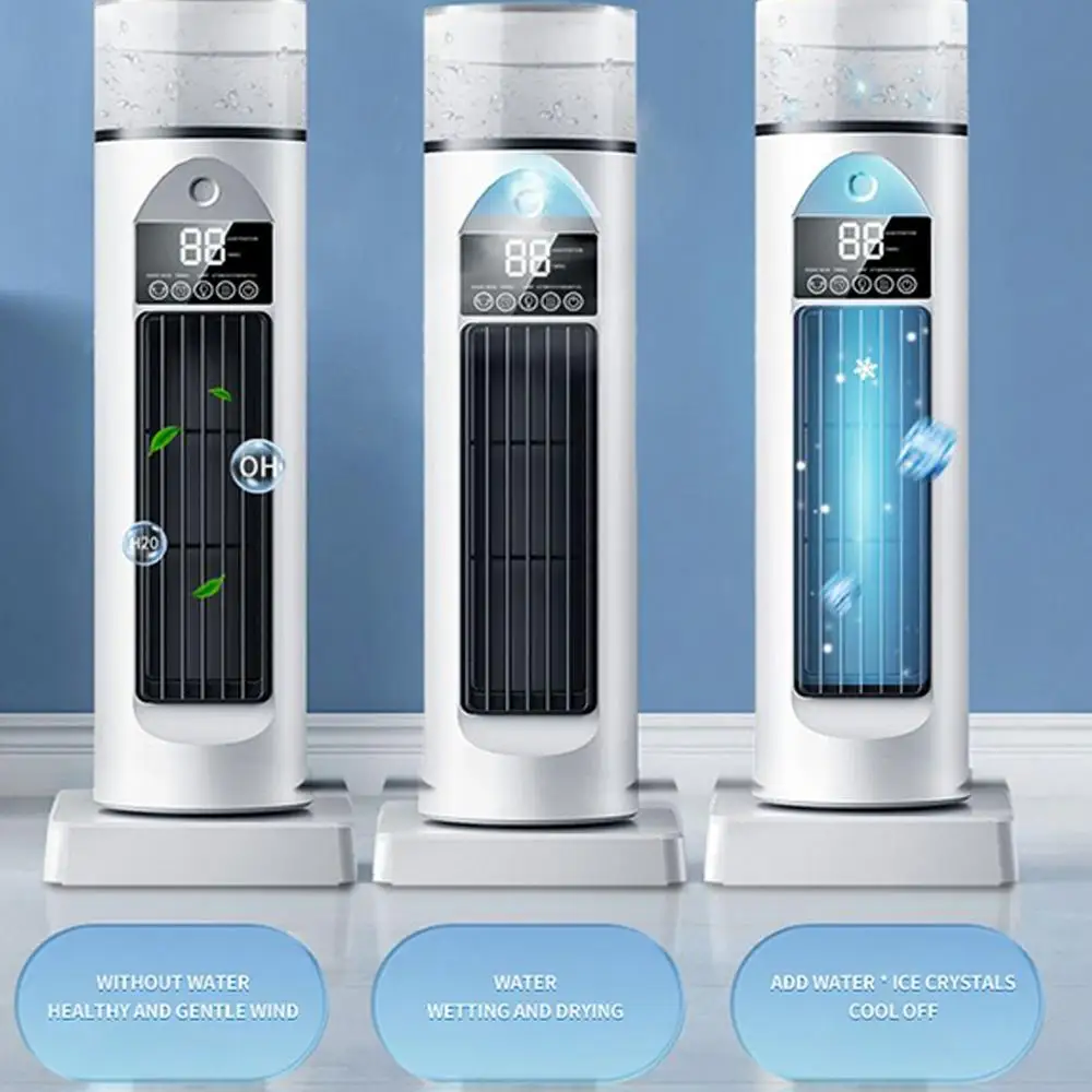 Transforma tu espacio con un ventilador de aire acondicionado portátil y silencioso diseñado para brindar comodidad especial.Su construcción sin cuchillas y sus velocidades ajustables lo hacen seguro y conveniente, mientras que el humidificador integrado agrega humedad al aire.Adecuado para dormitorios, salas de estar, lugares de trabajo, dormitorios, garajes y configuraciones de campamentos interiores, este enfriador evaporativo se controla mediante temporizador y control remoto.