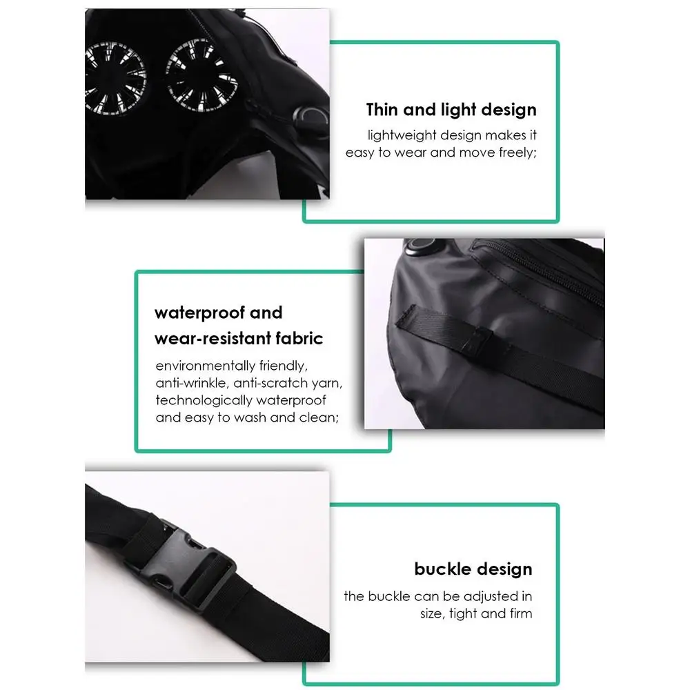 1. Buena durabilidad del material: siente la comodidad duradera de nuestro ventilador de cintura con materiales resistentes al desgaste, cremalleras ajustables y correas para los hombros. Hecho con pegamento impermeable de membrana y fibra de poliéster.