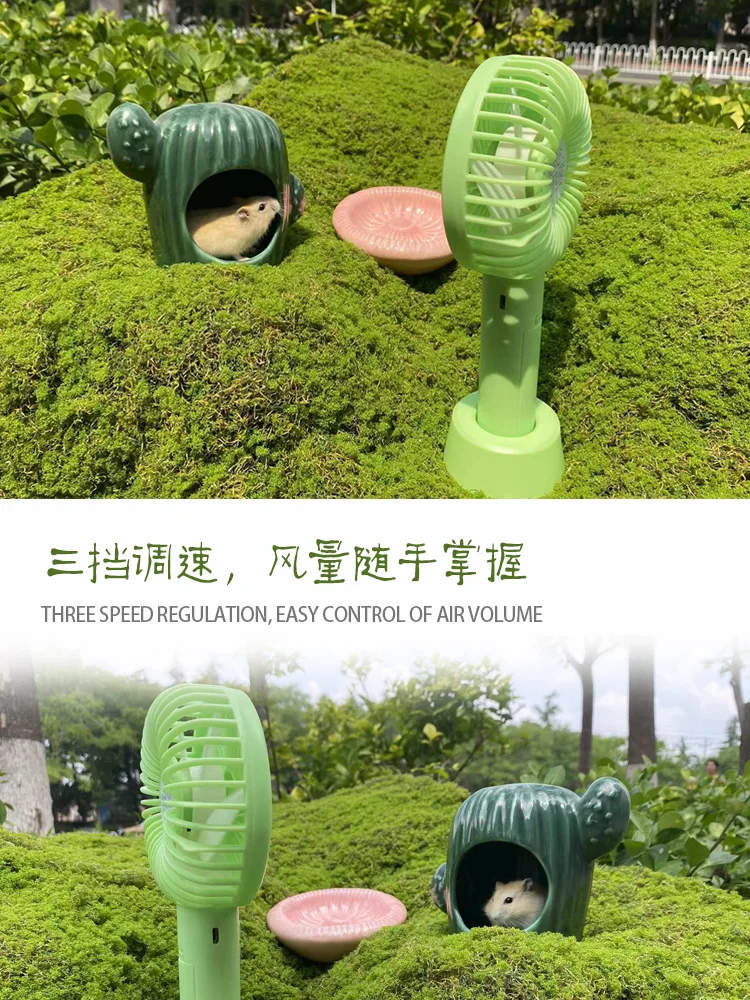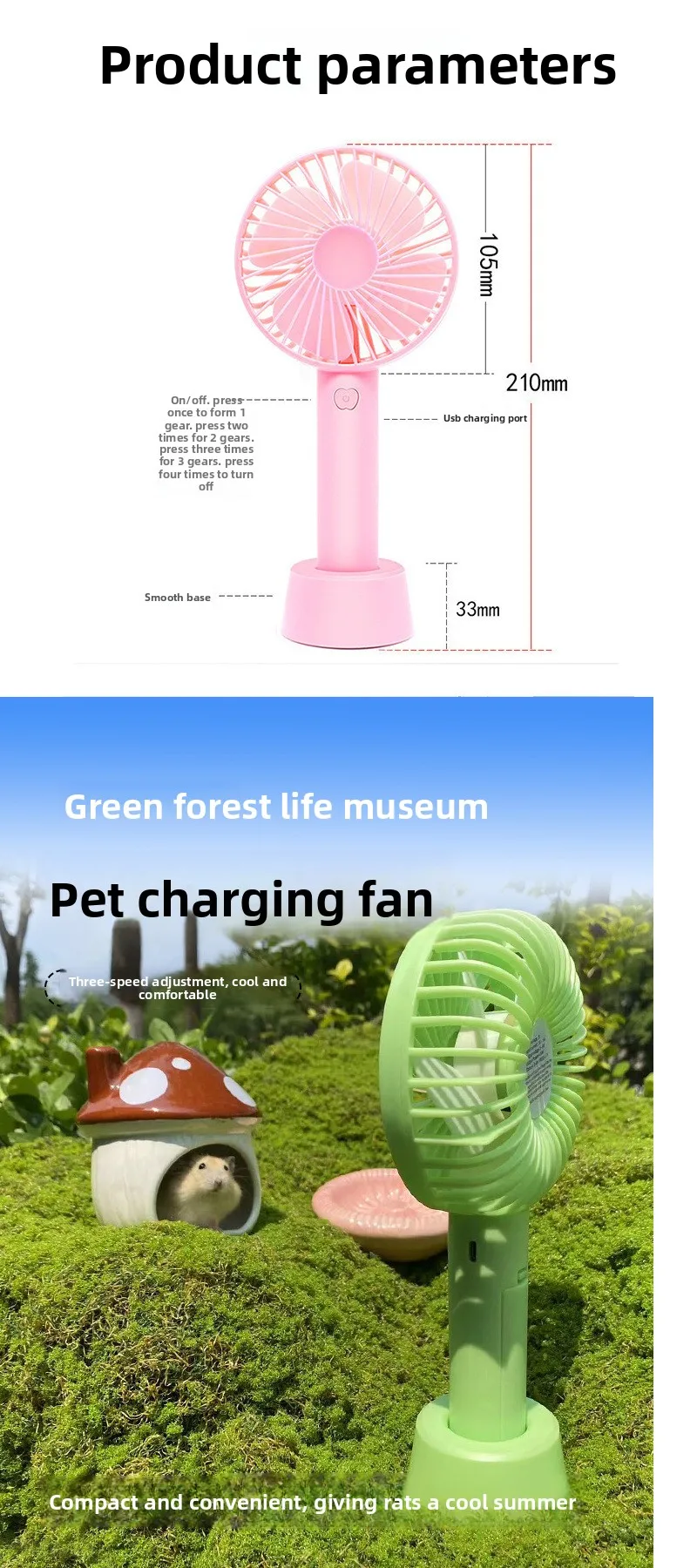 Ventilador eléctrico Mini llevar hámster refrigeración pequeño ventilador tercer engranaje Usb mascota oso dorado productos especiales para mascotas de verano