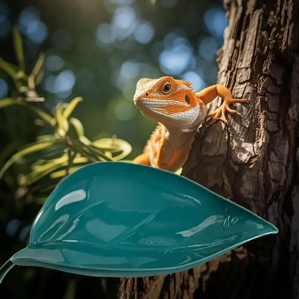 Ventosa de hoja simulada para reptiles, decoración de hábitat, terraza de descanso para tomar el sol, adorno de paisaje de tanque de ranas Geckos para reptiles