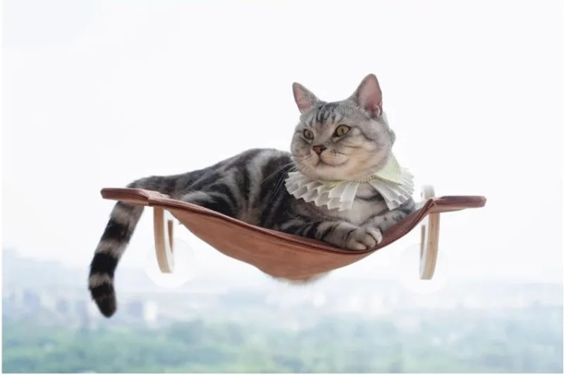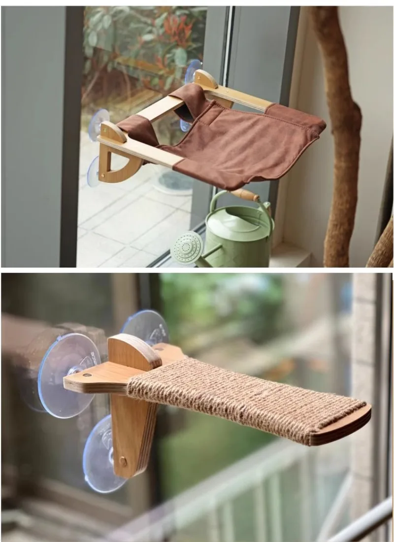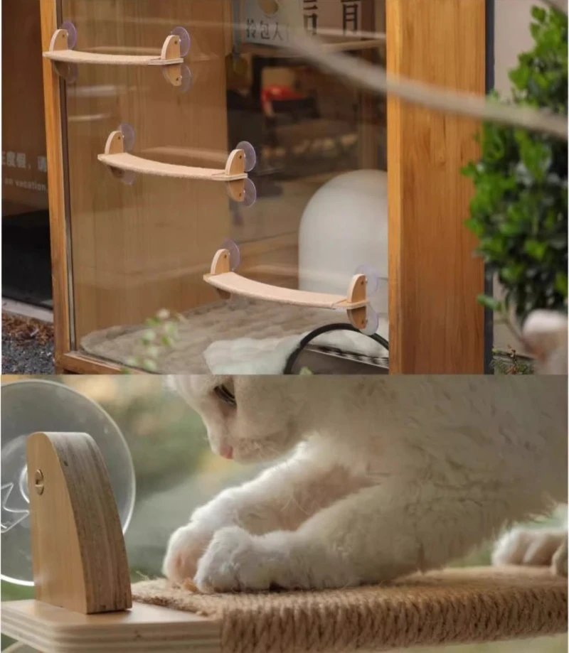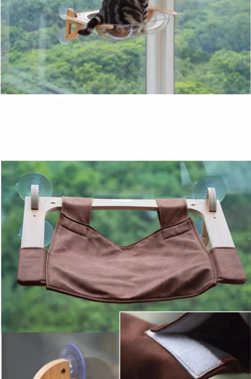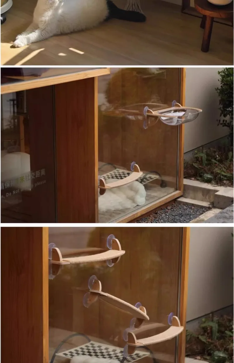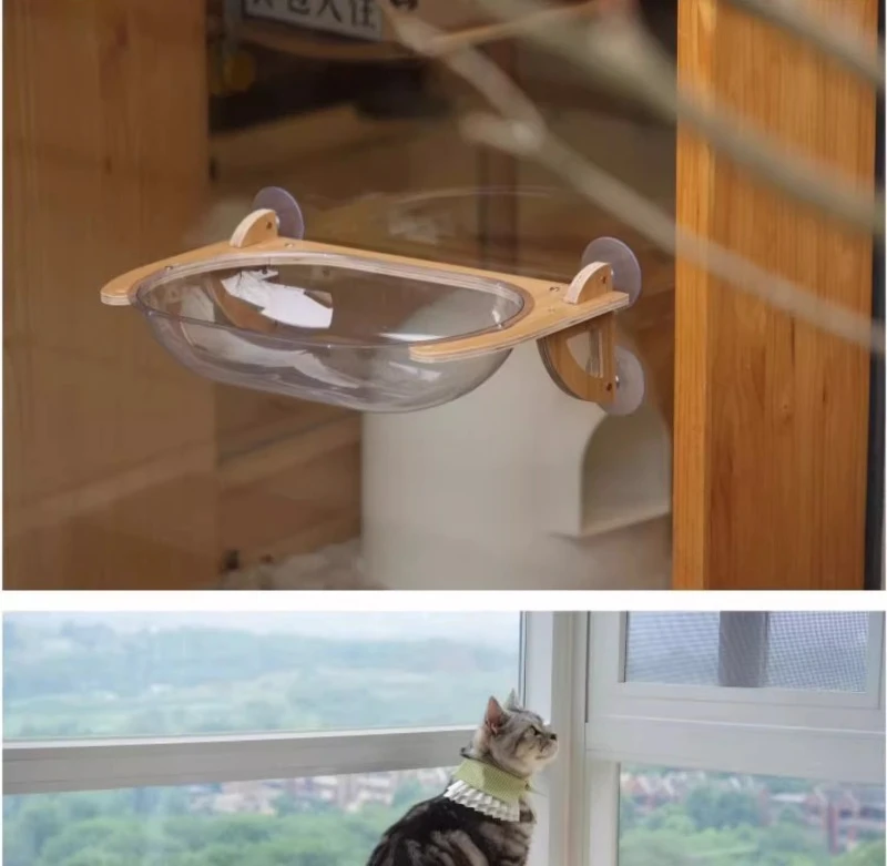 Ventosa de pared para gatos de Color grano de madera, cápsula de vidrio, marco de escalada para gatos, hamaca transparente, muebles para mascotas, productos rascadores