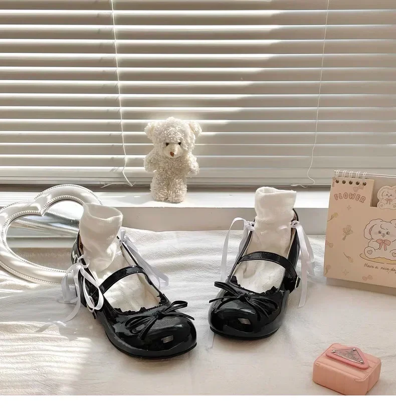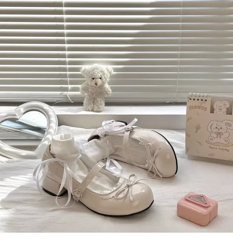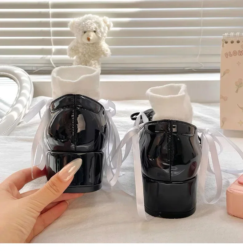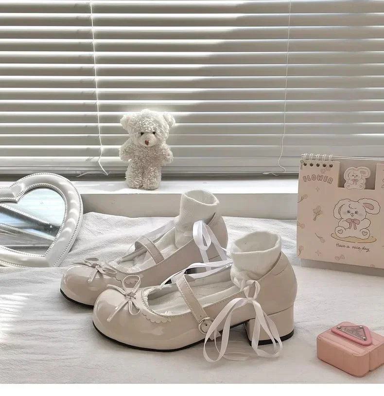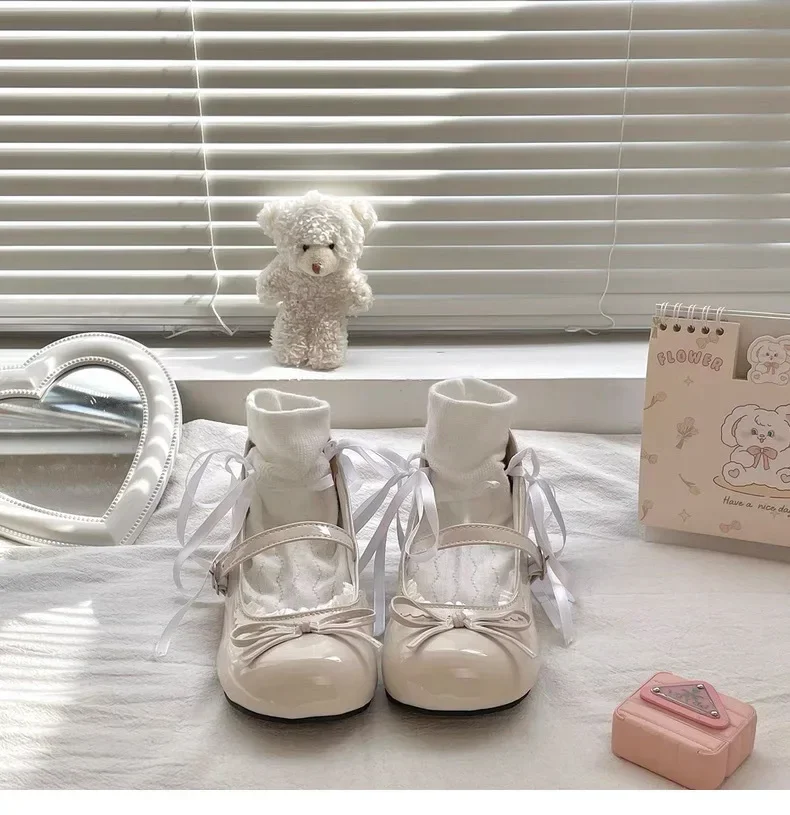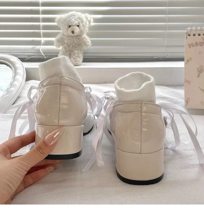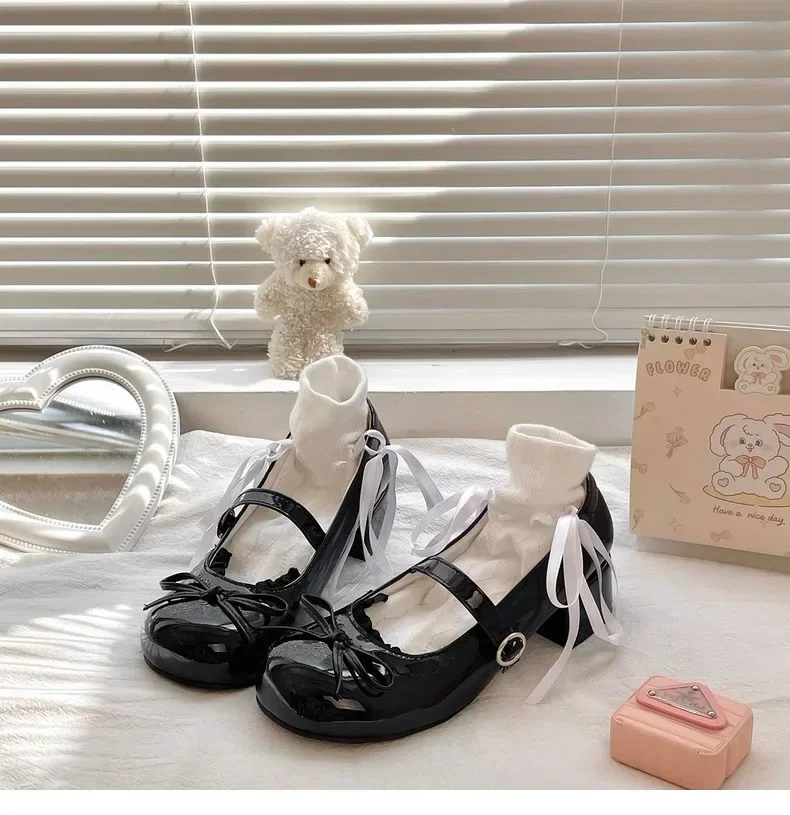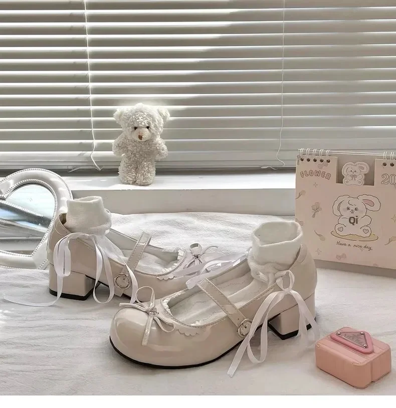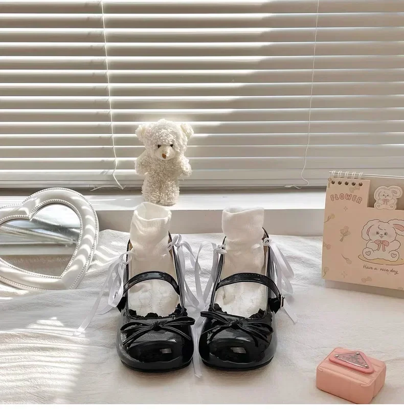 Verano helado Color serie Lolita mujer media pantorrilla Mary Jane zapatos individuales cabeza redonda tacón plano calzado de estilo dulce
