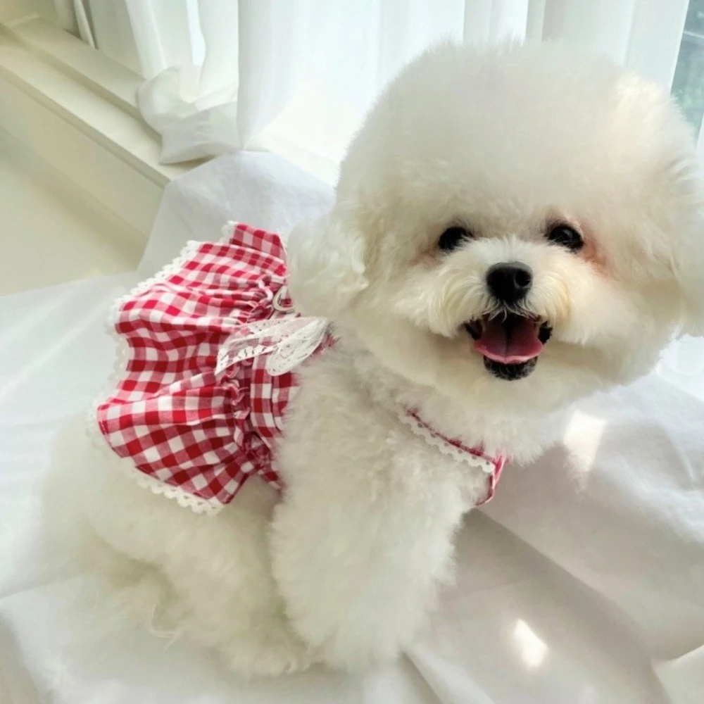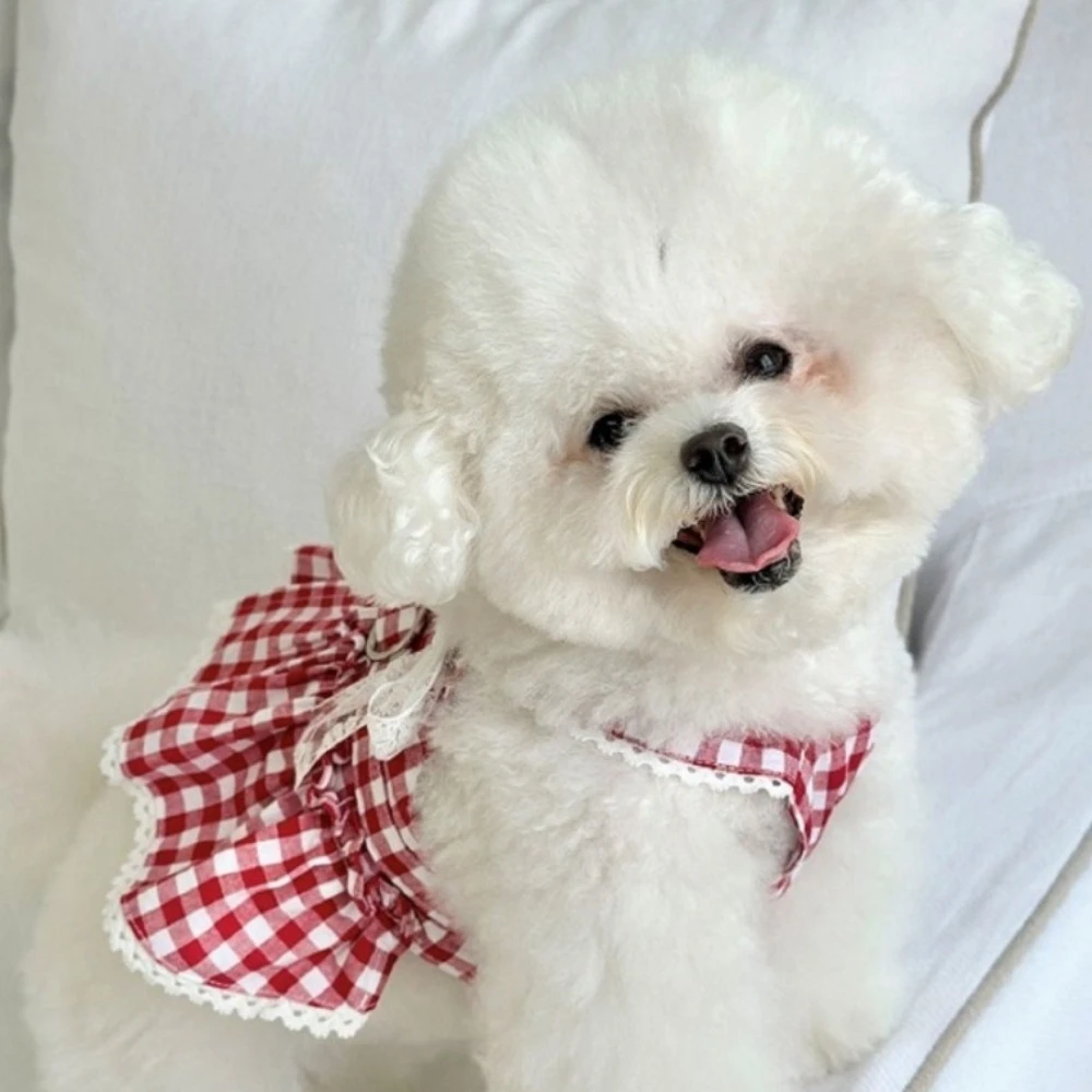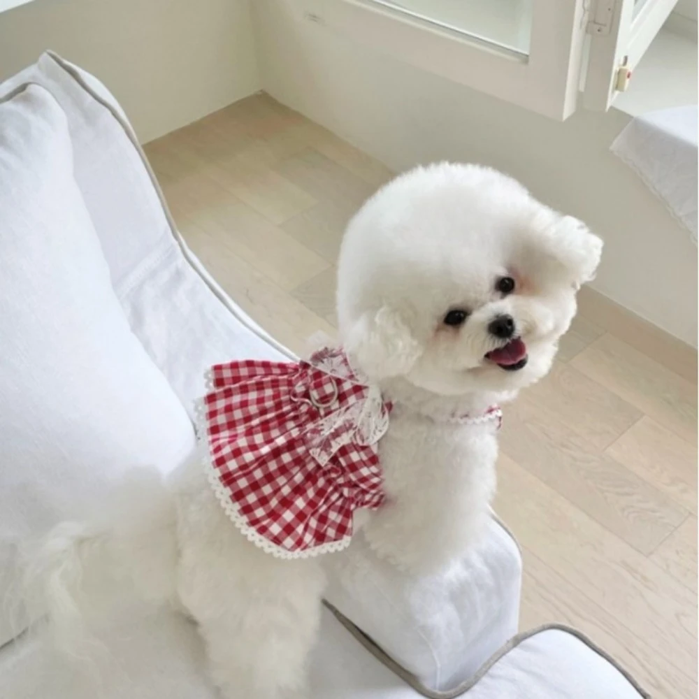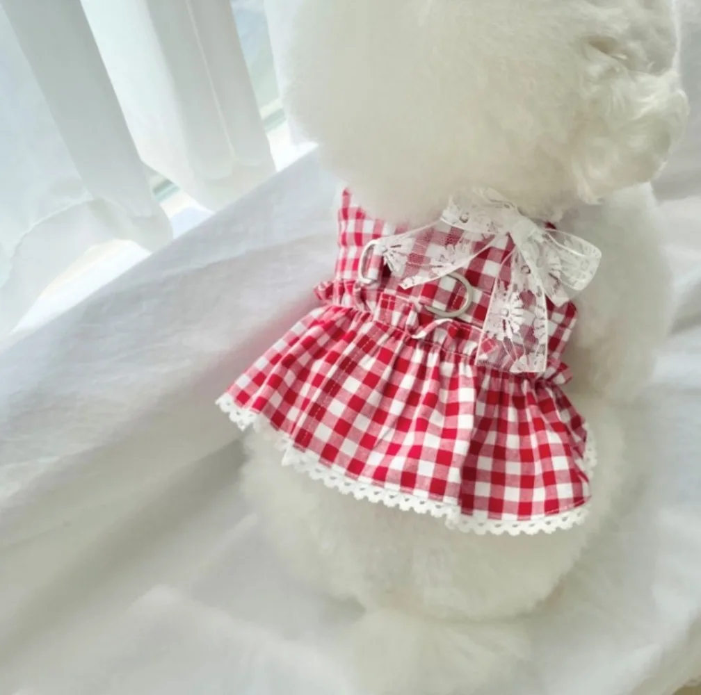 Vestido a cuadros bonito para primavera/verano para mascotas, vestido de princesa con tracción en el pecho y la espalda para perros y gatos, ropa para perros pequeños, ropa para cachorros