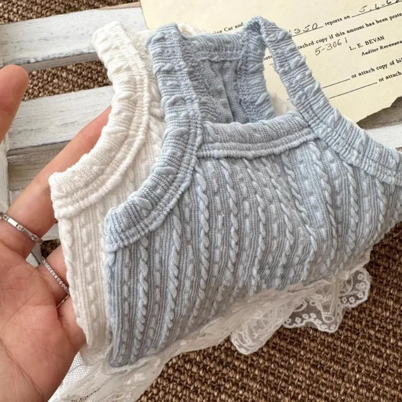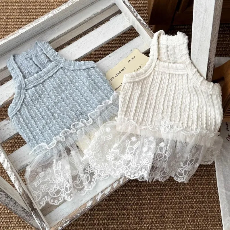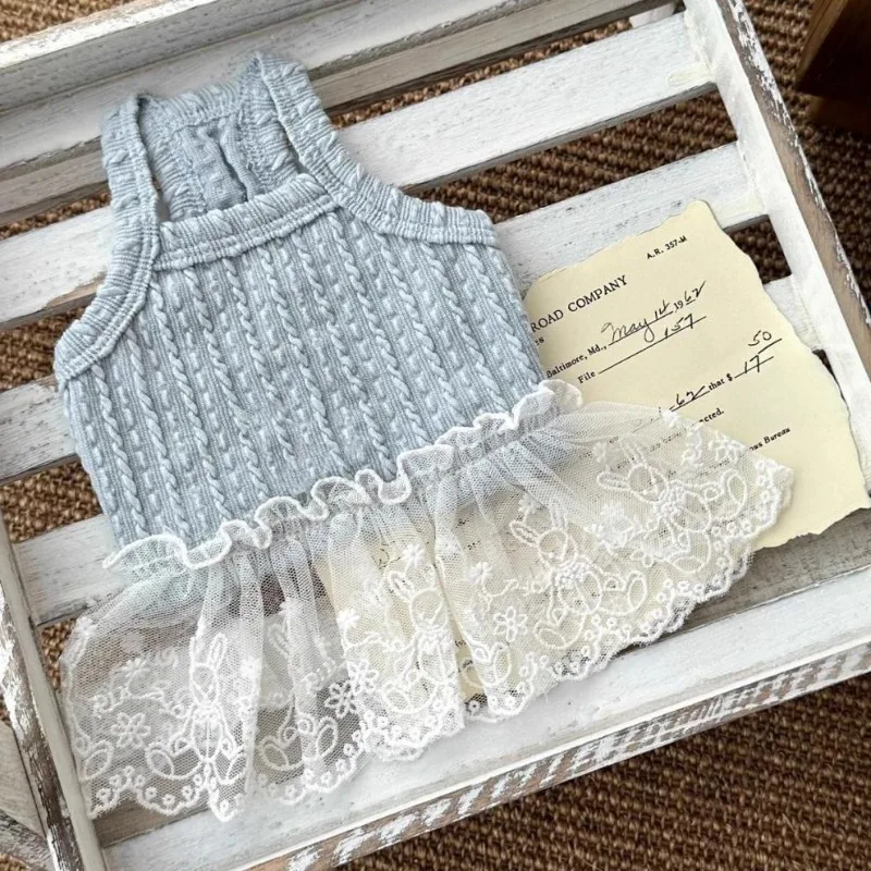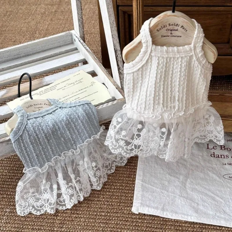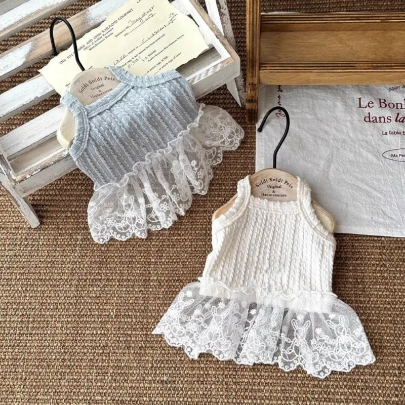 Vestido a cuadros de verano para mascotas, ropa para gatos, talla fina, cachorro, Teddy, lazo de Yorkshire, camiseta sin mangas de encaje, ropa para cachorros