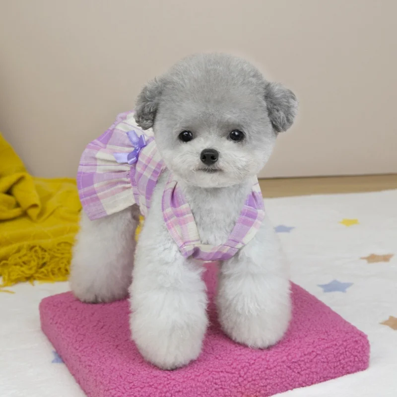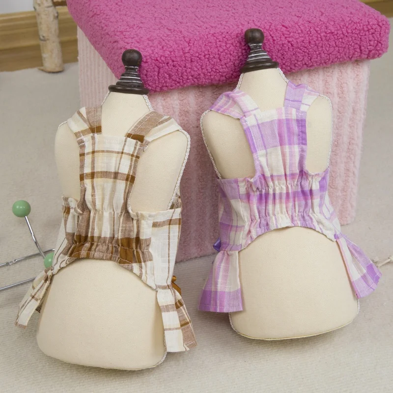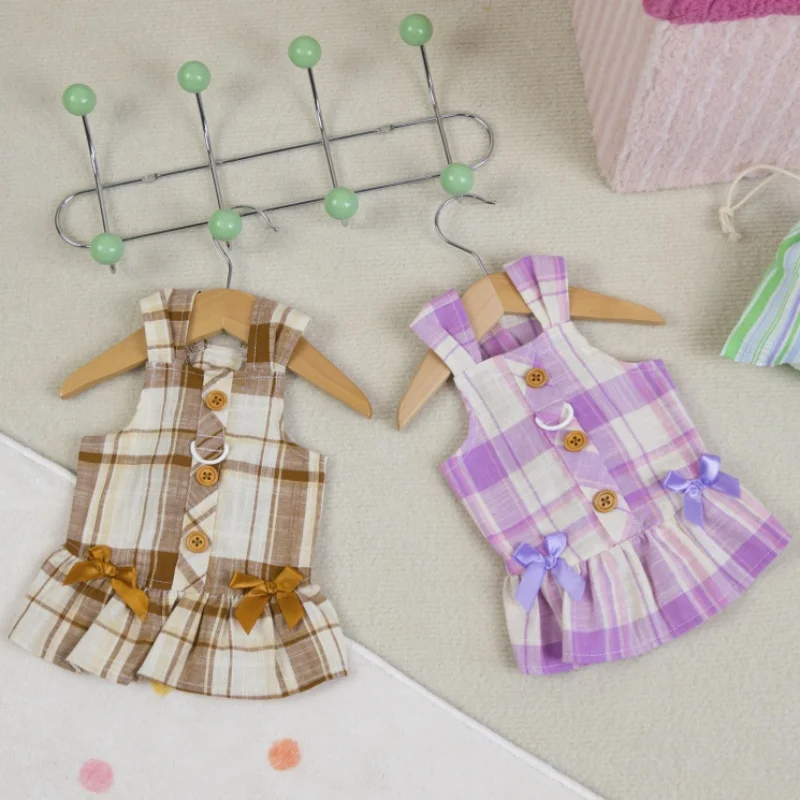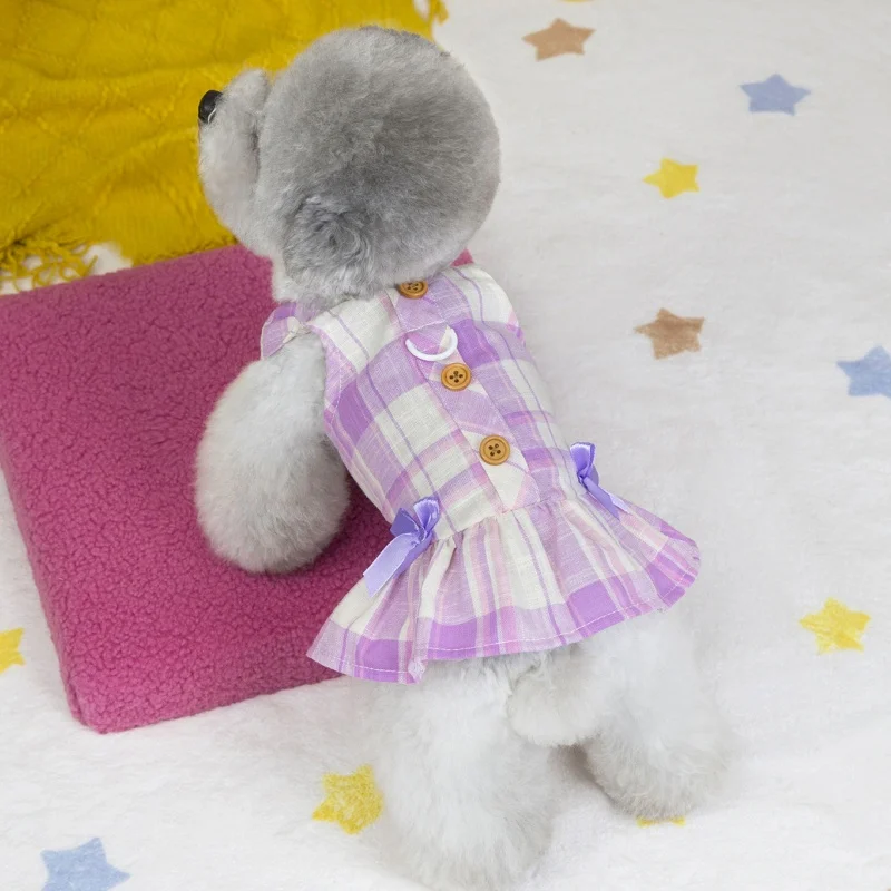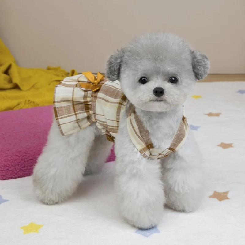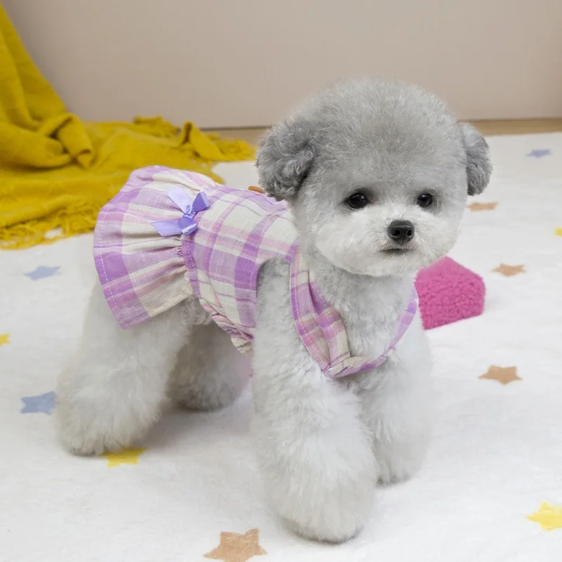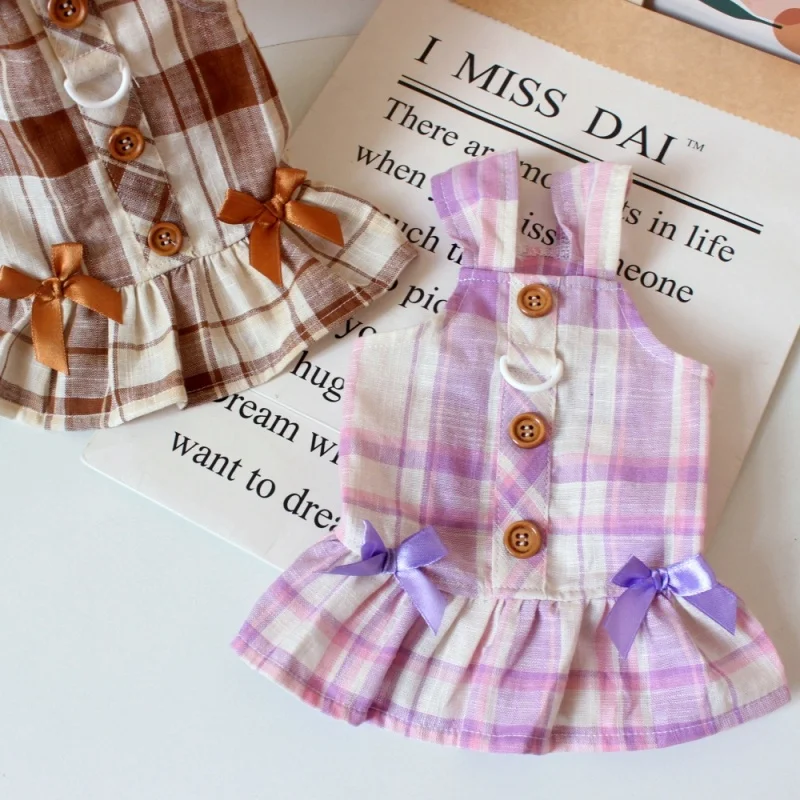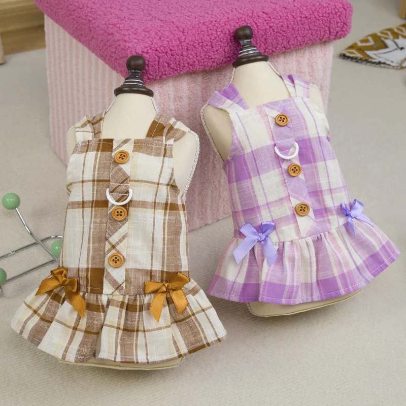 Vestido de perro con lazo a la moda, ropa de algodón para perro, falda de princesa a cuadros bonita para cachorros, vestidos con tirantes de gato de verano, disfraces de mascota de Yorkshire